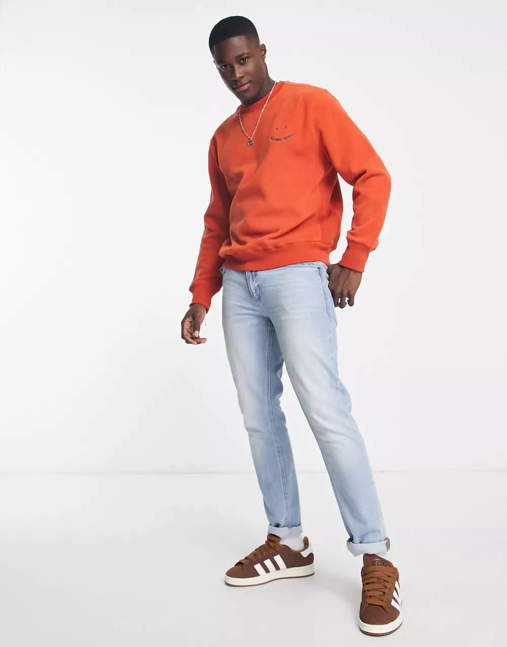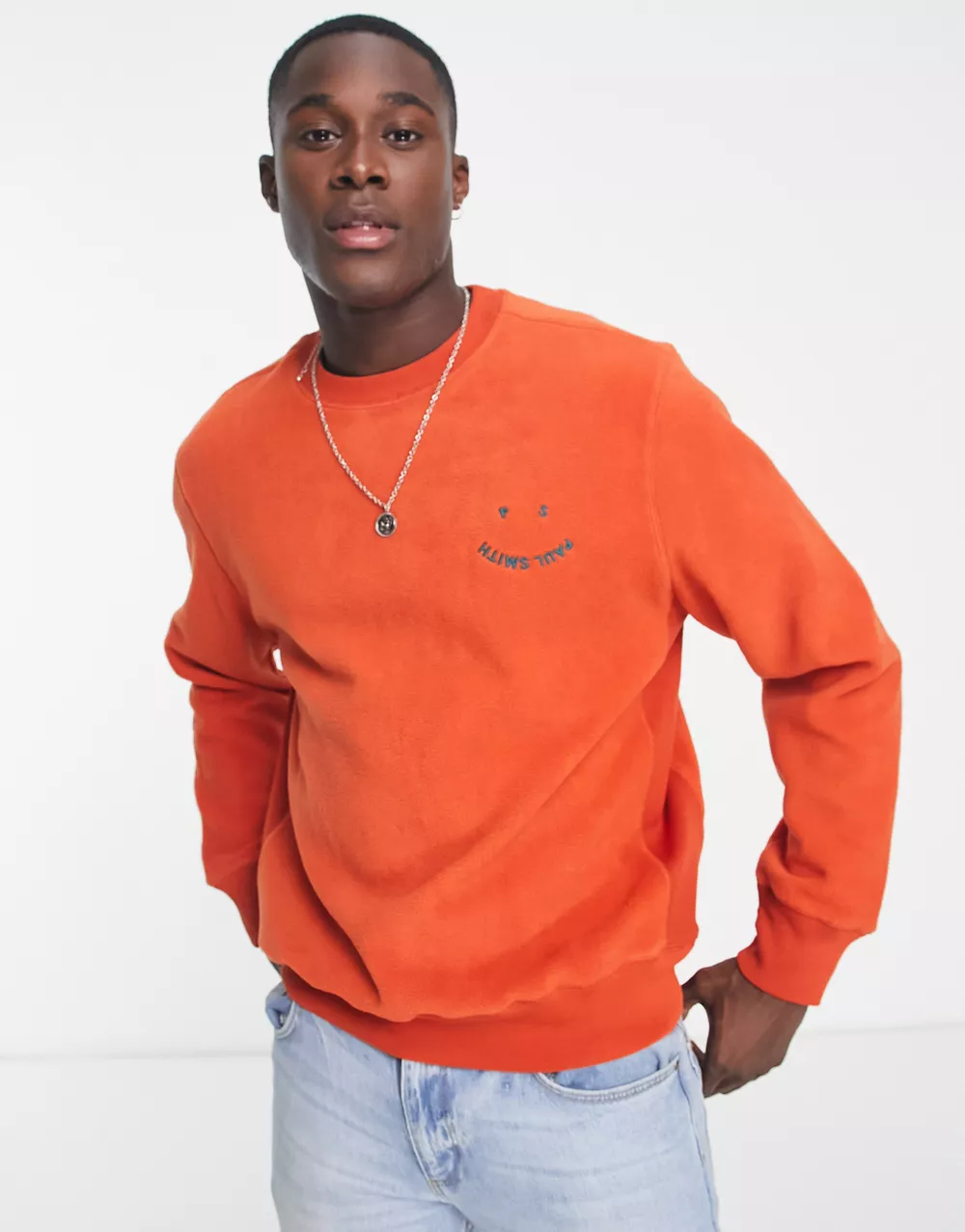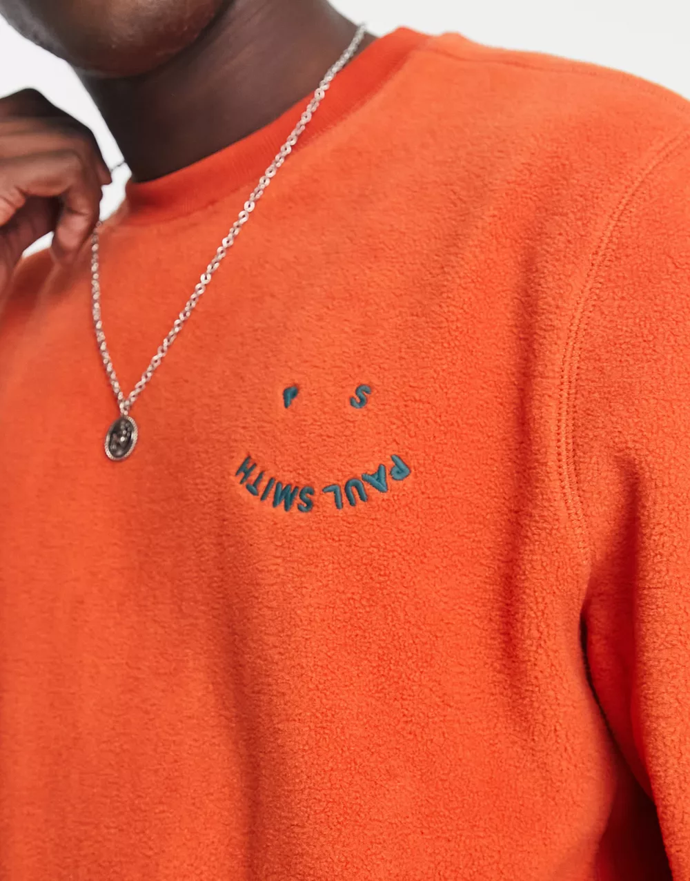- PS Paul Smith fleece sweatshirt in orange with happy face embroidery