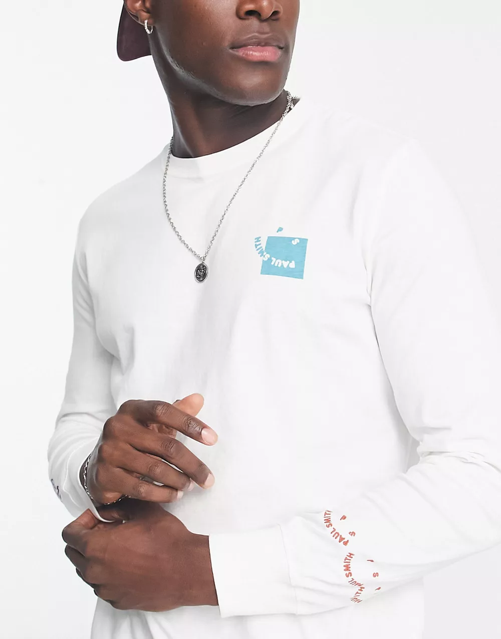 - PS Paul Smith long sleeve top with happy face skattered graphics in white