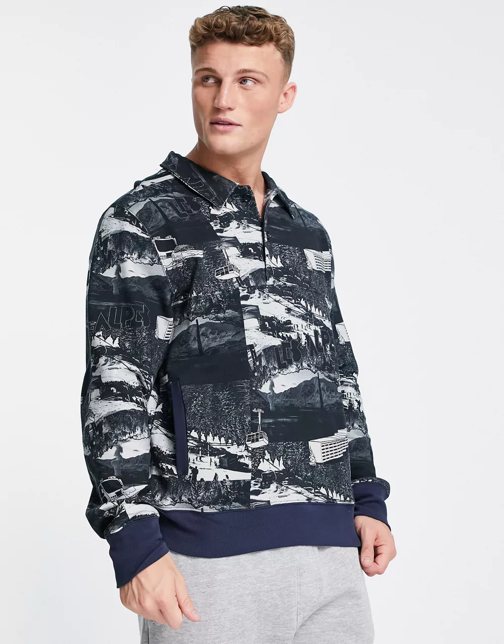 - PS Paul Smith polo style sweatshirt in navy with all over alpes print