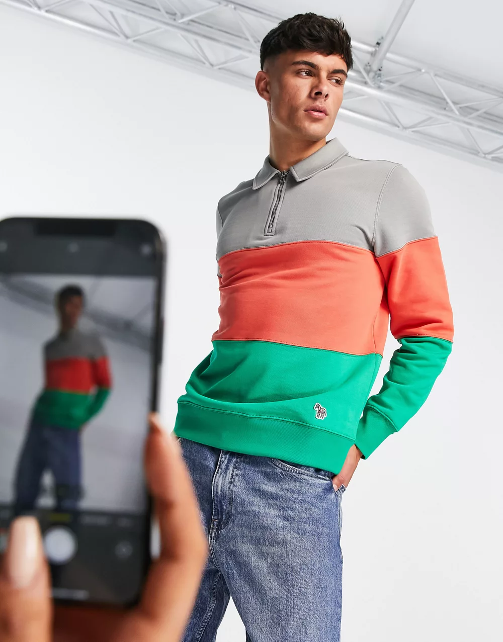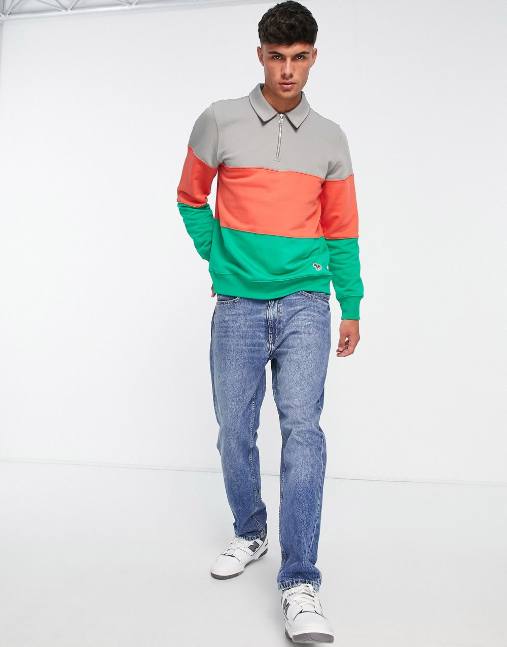 - PS Paul Smith zebra half zip colour block sweatshirt in grey