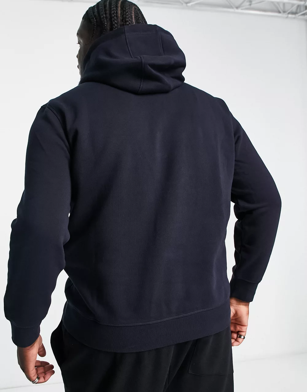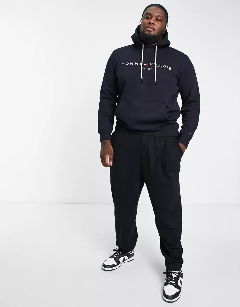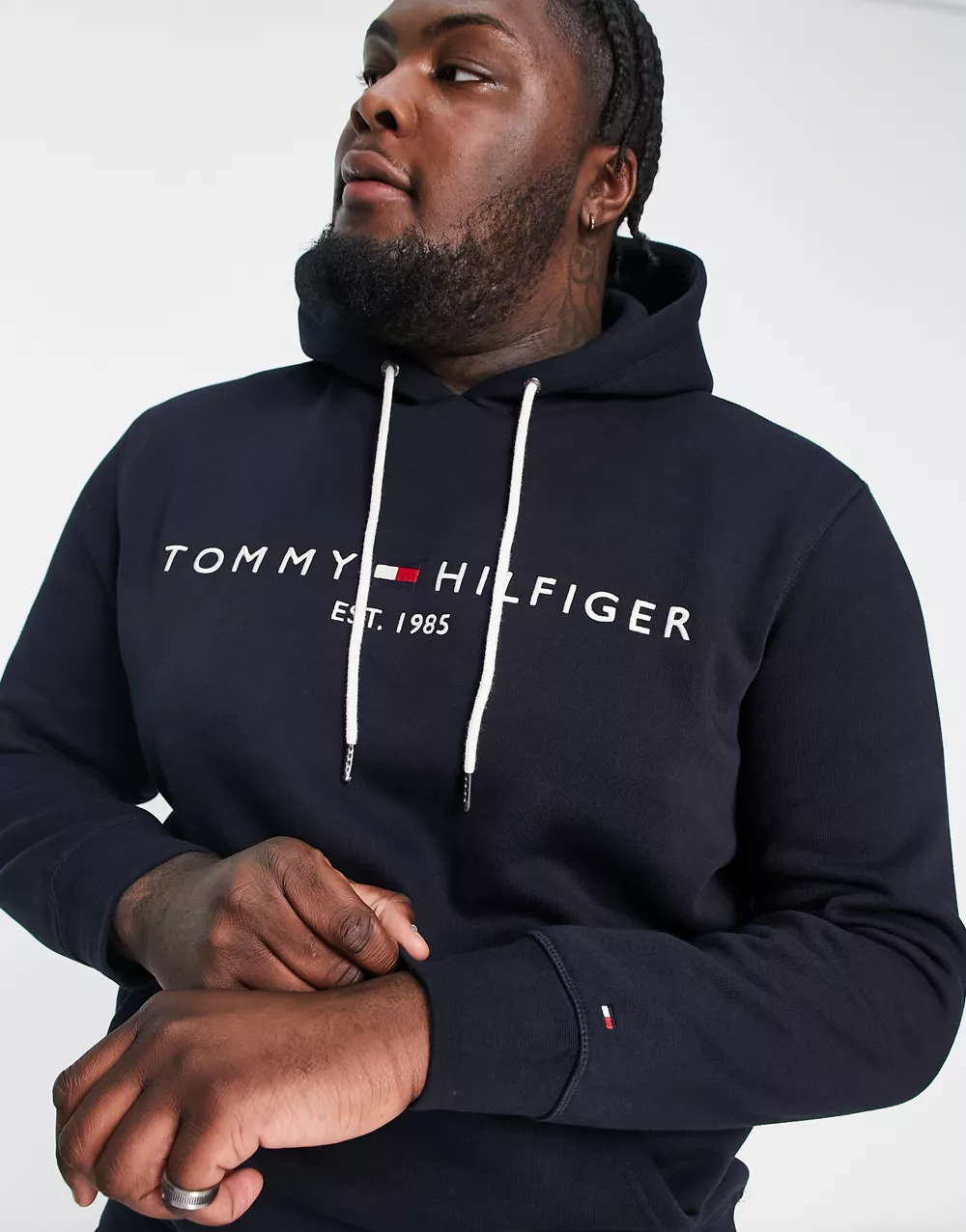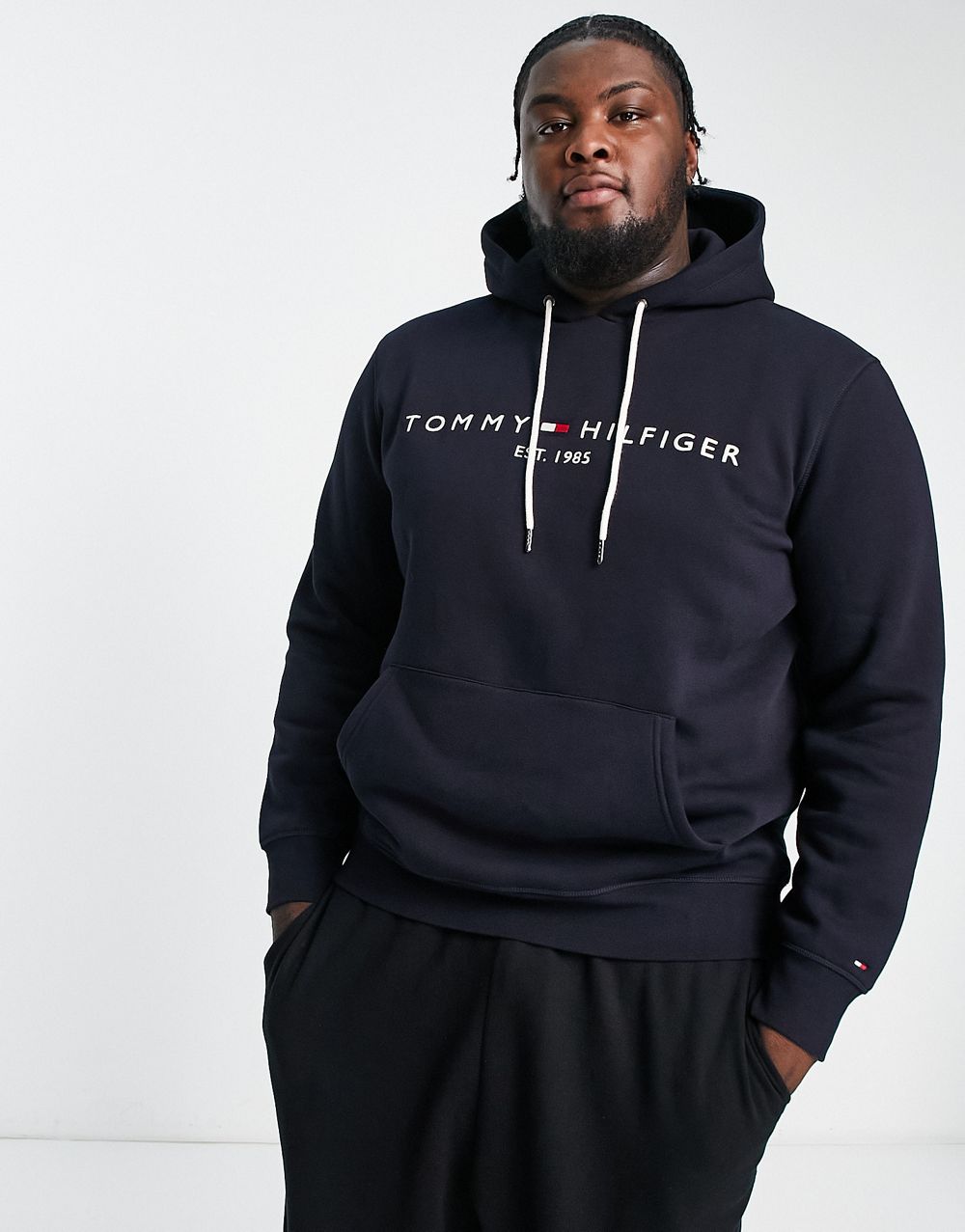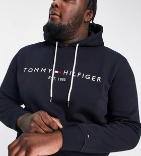 - Tommy Hilfiger Big & Tall embroidered logo cotton blend hoodie in navy