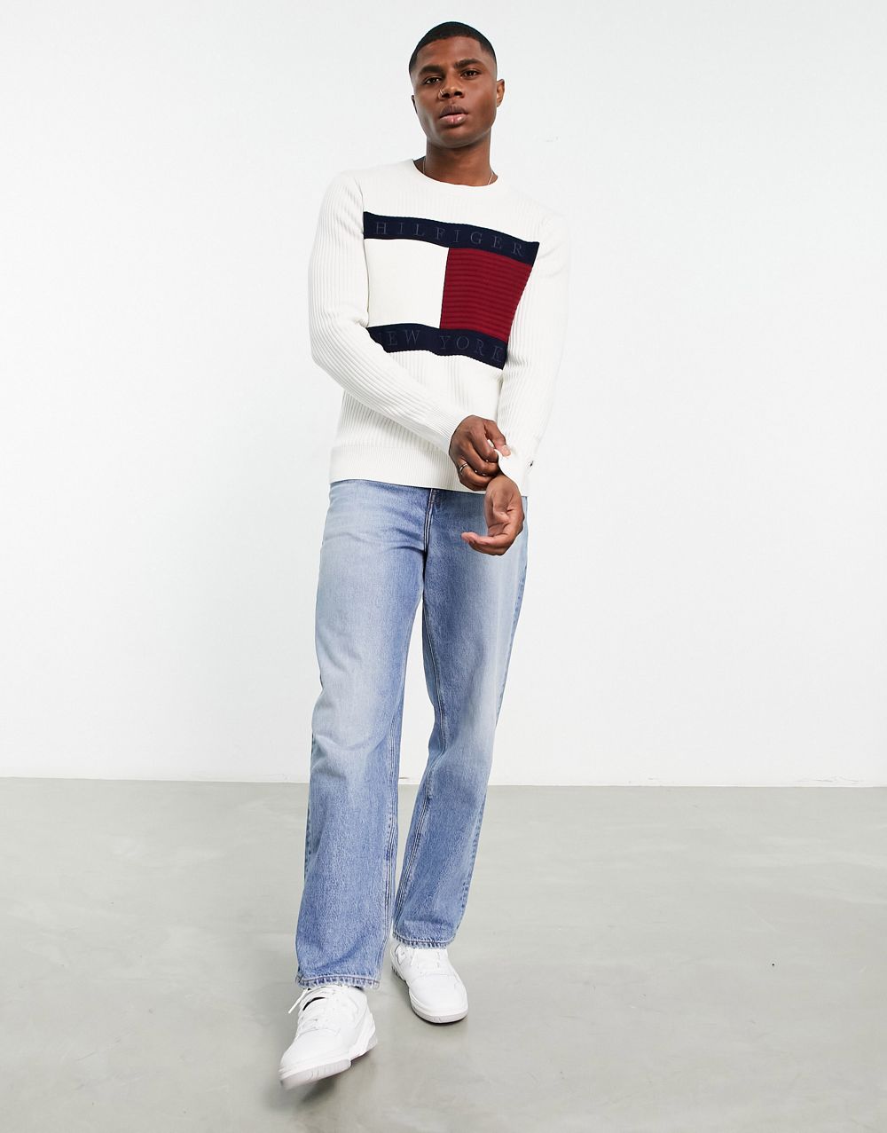 - Tommy Hilfiger cotton blend large flag logo knit jumper in ivory