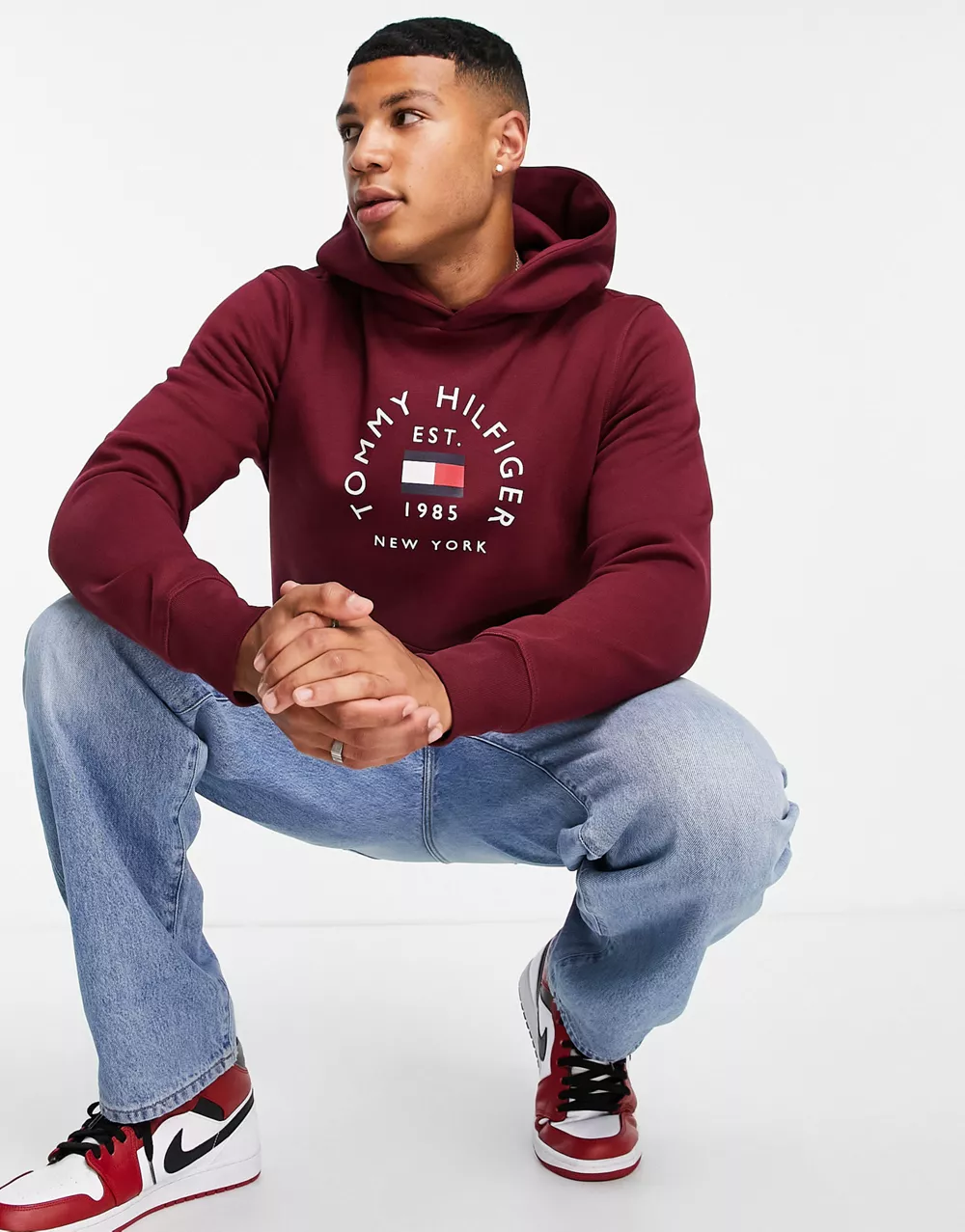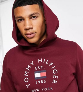 - Tommy Hilfiger flag arch logo cotton blend hoodie in burgundy
