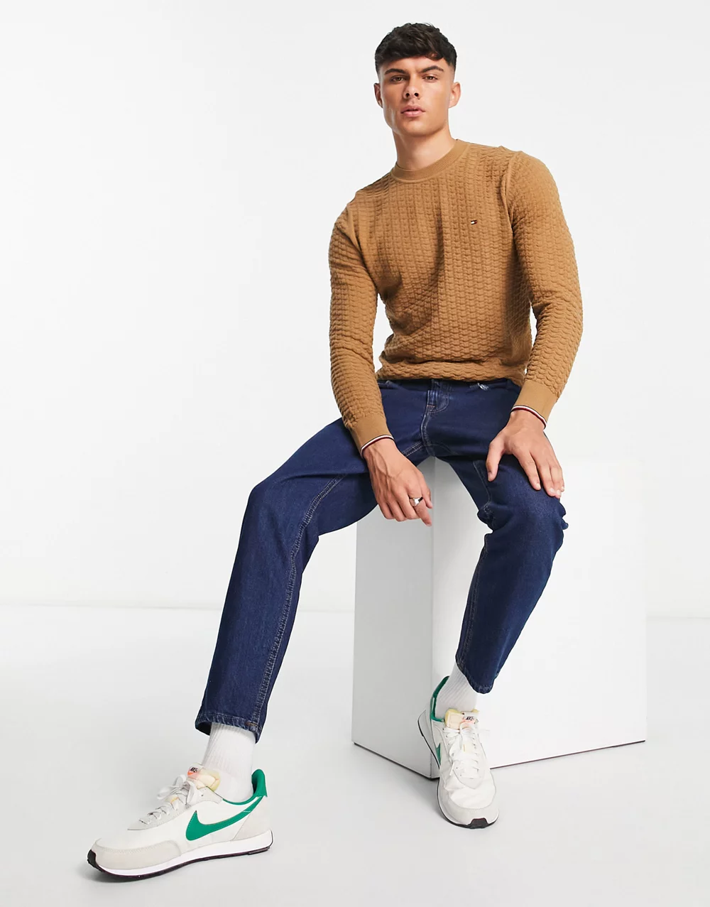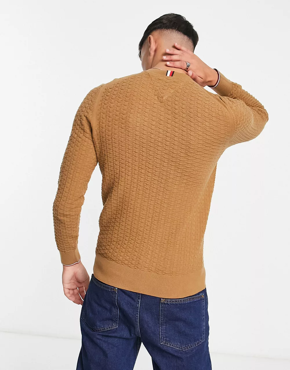 - Tommy Hilfiger flag logo exaggerated structure knit jumper in khaki tan