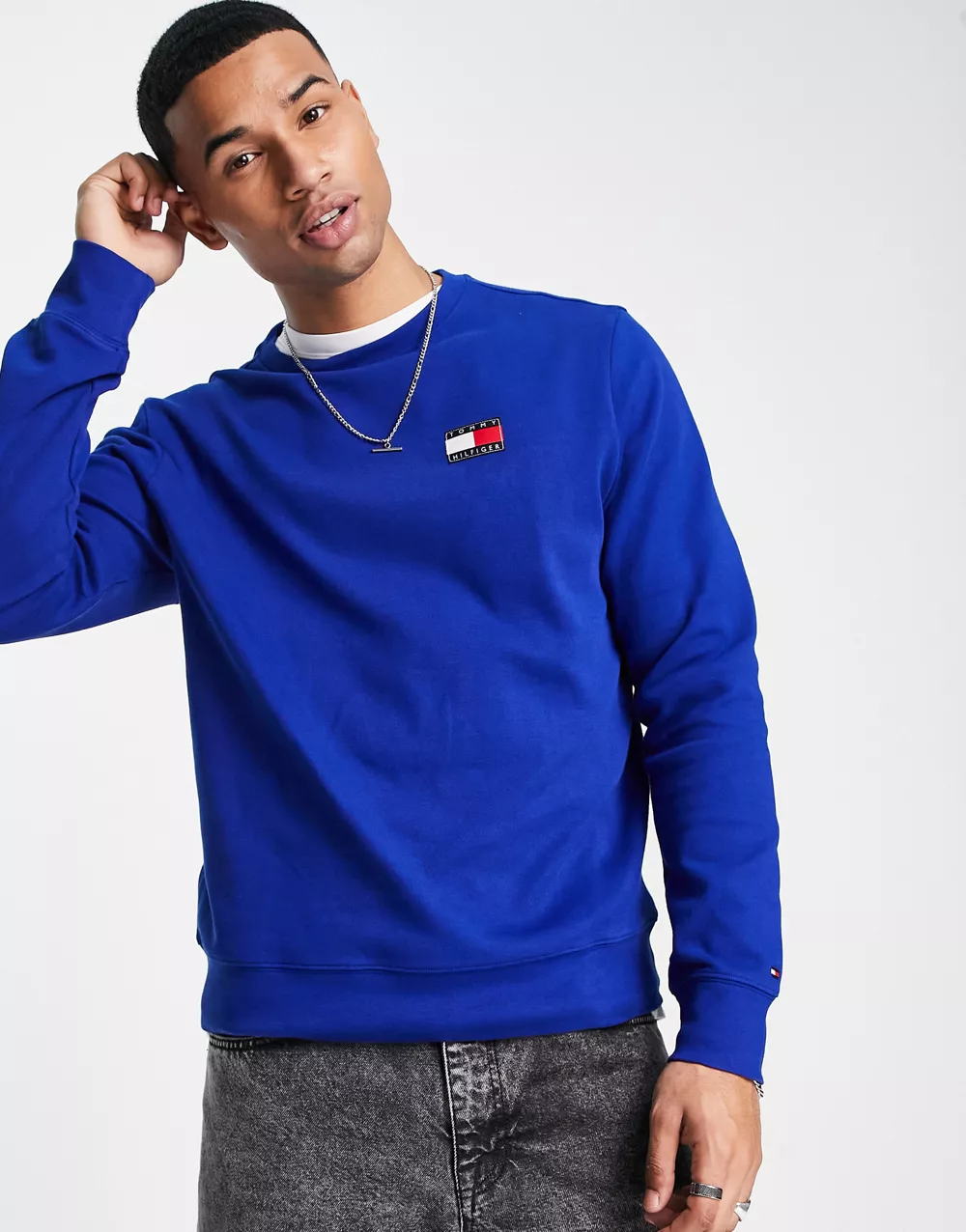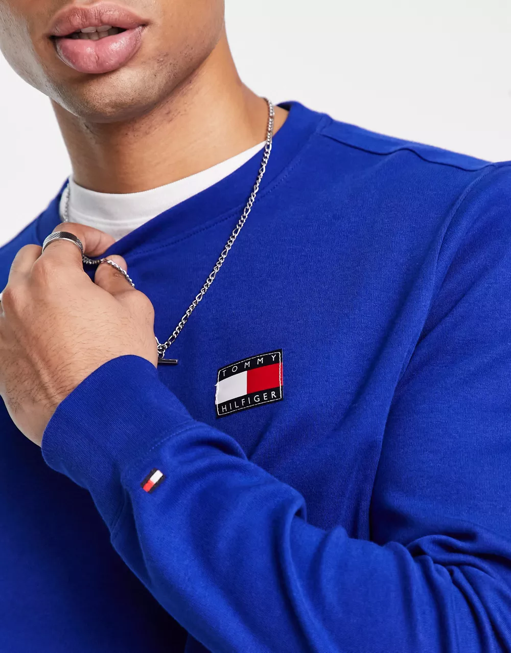 Calvin Klein Jeans monologo sleeve badge hoodie in light blue