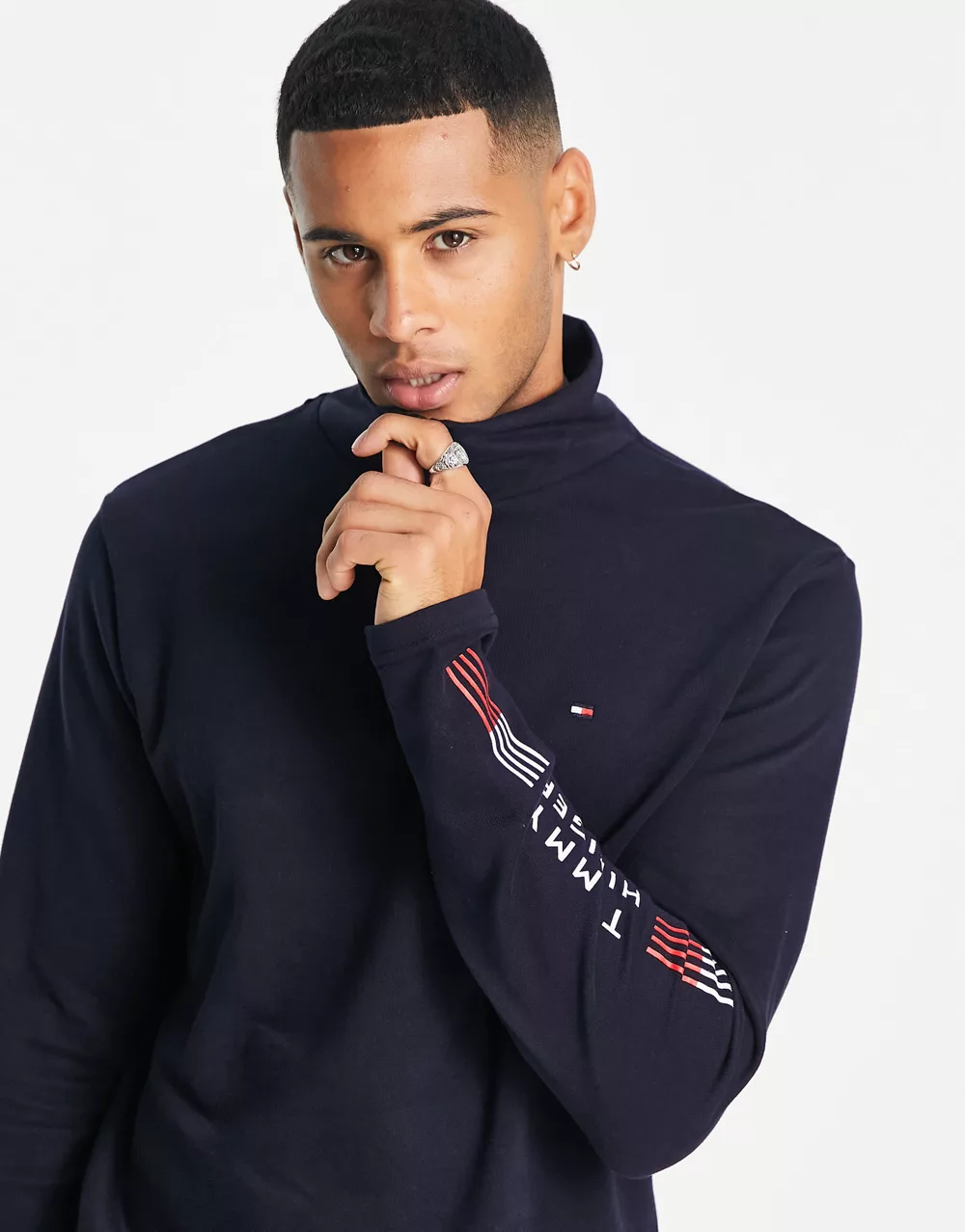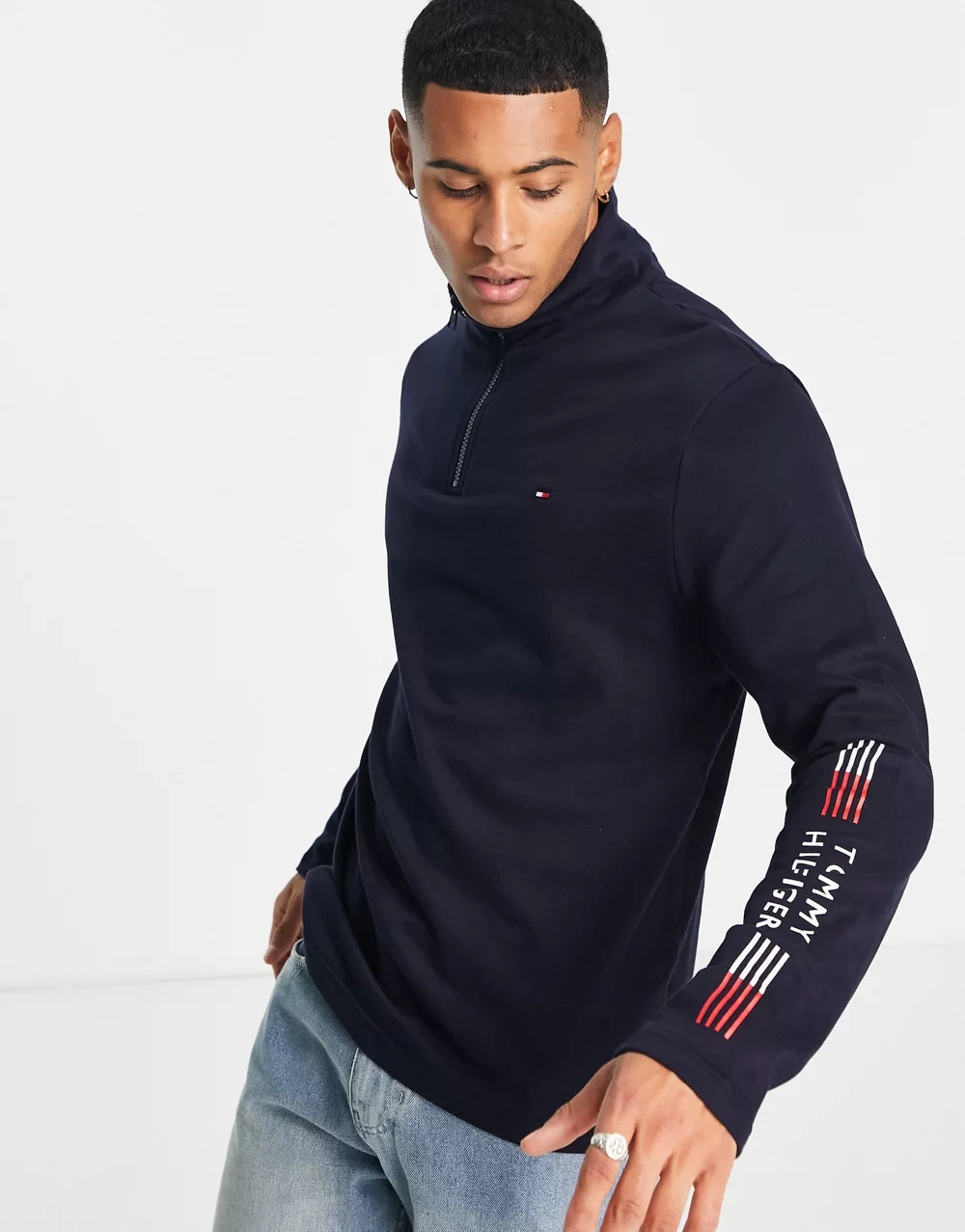 - Tommy Hilfiger loungewear half-zip sweatshirt in navy co-ord