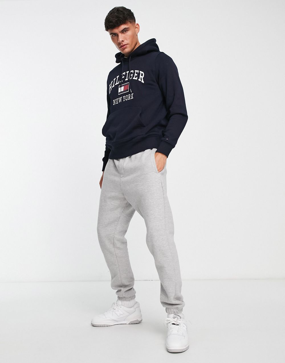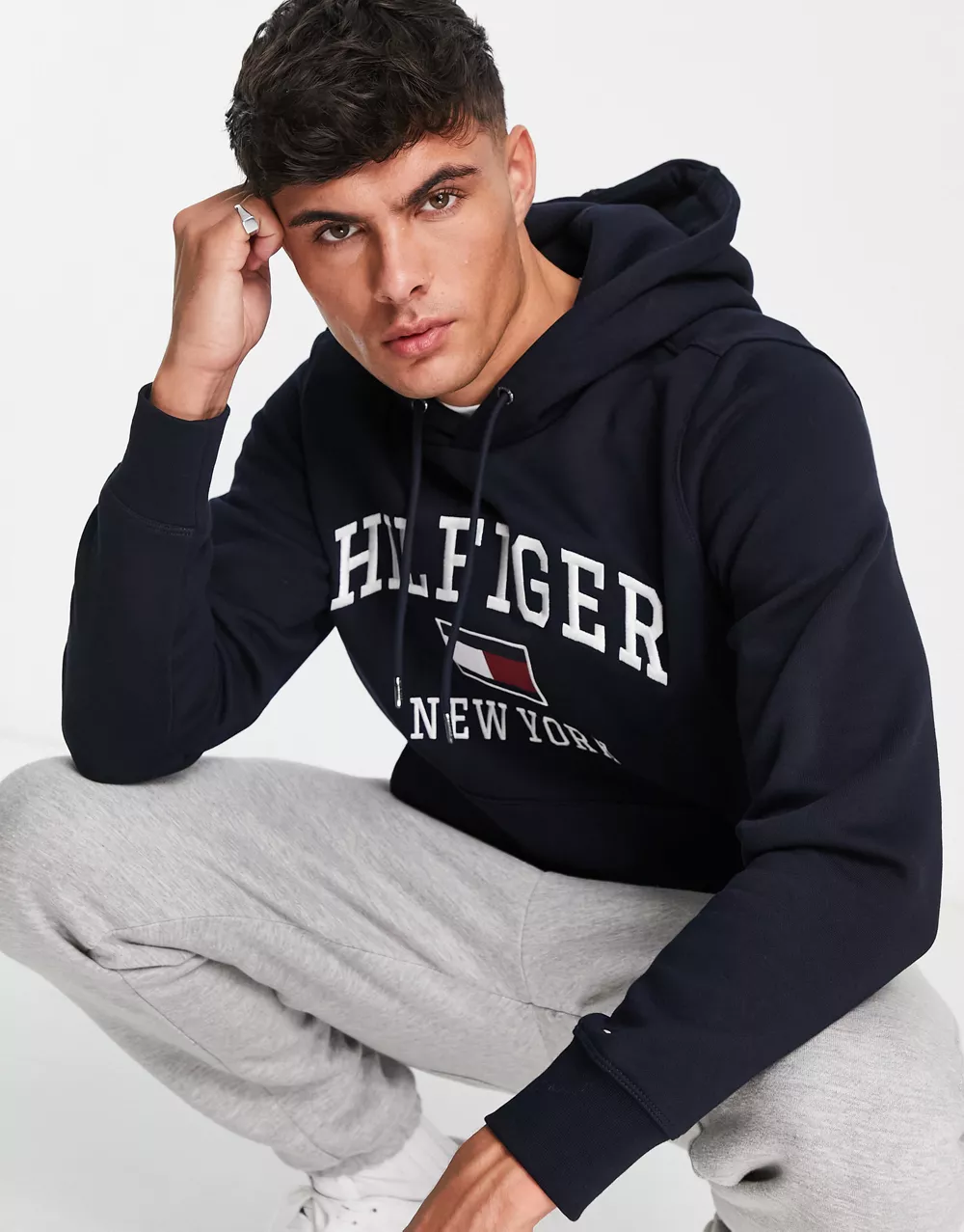 - Tommy Hilfiger modern varsity logo cotton blend hoodie in navy