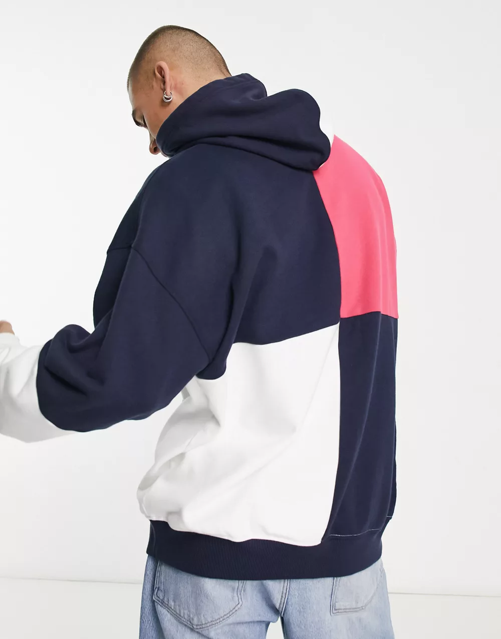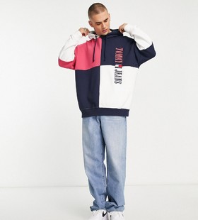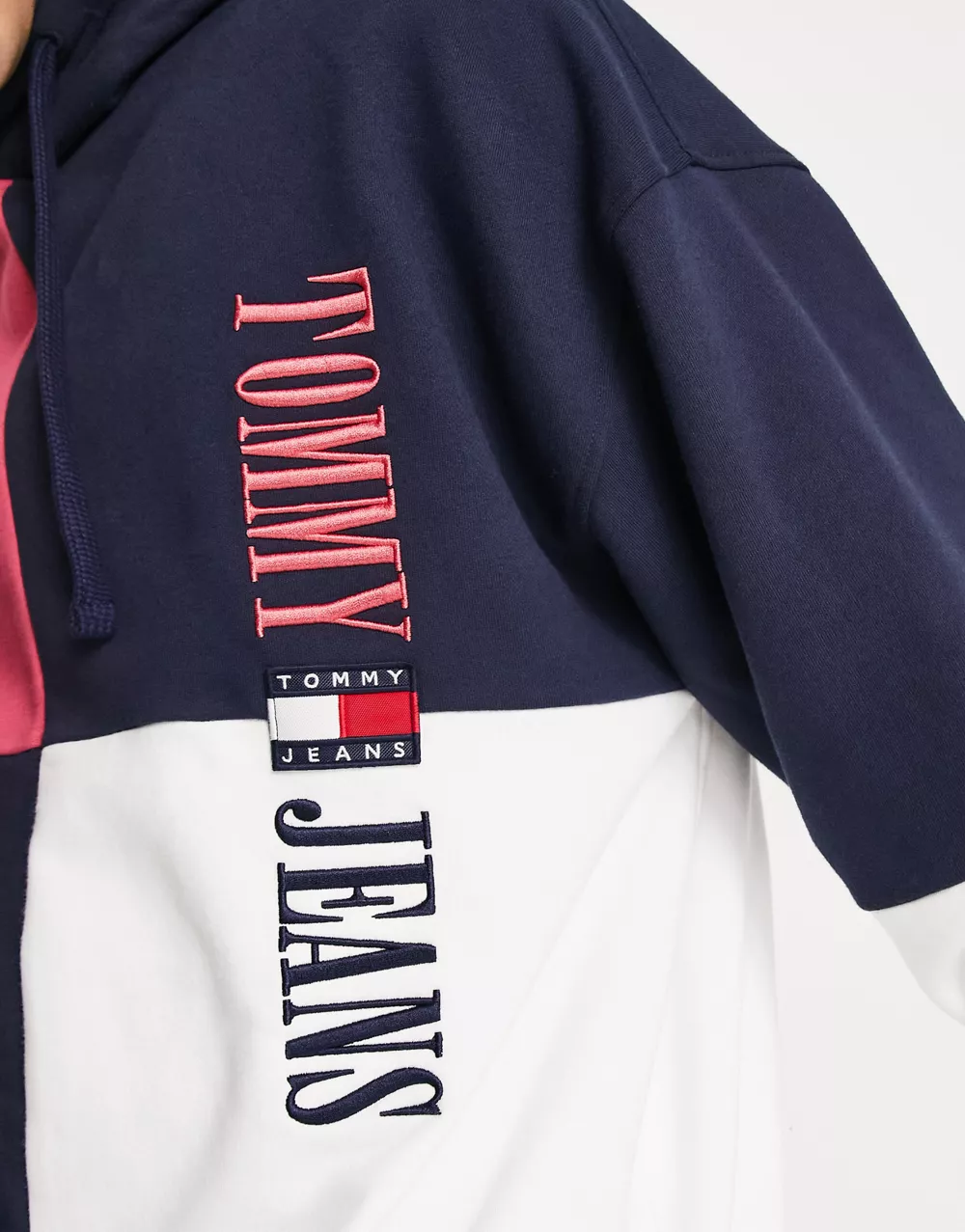 - Tommy Jeans archive logo colourblock hoodie skater fit in navy