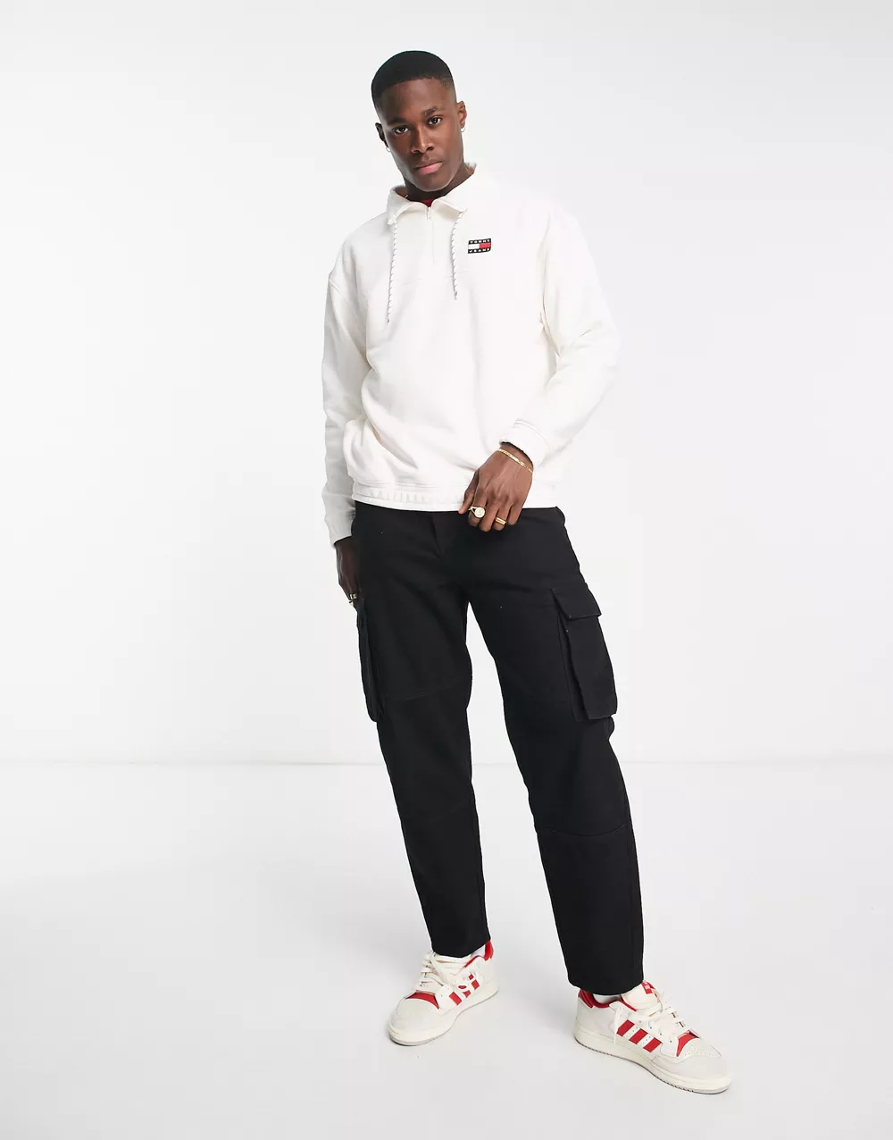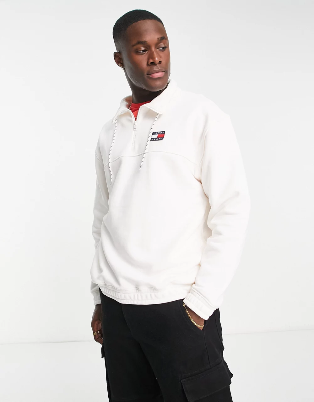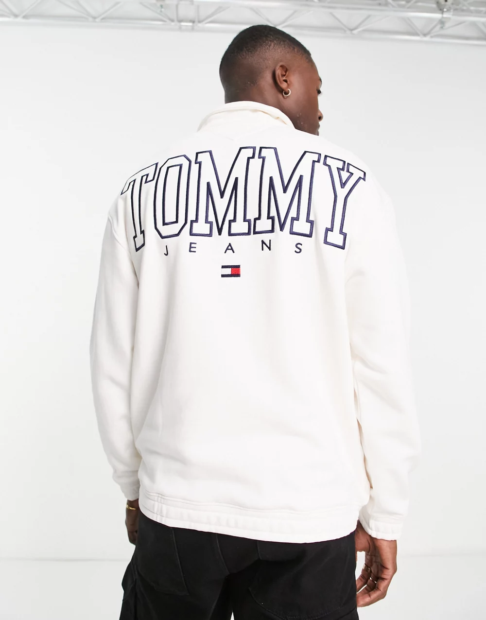 - Tommy Jeans ASOS exclusive heritage capsule back logo half zip sweatshirt relaxed fit in off white