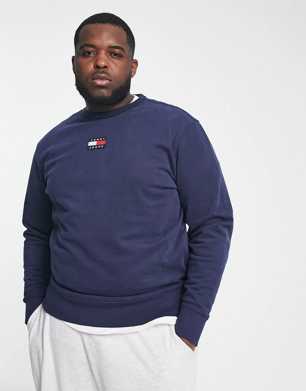 - Tommy Jeans Big & Tall archive flag logo sweatshirt in navy