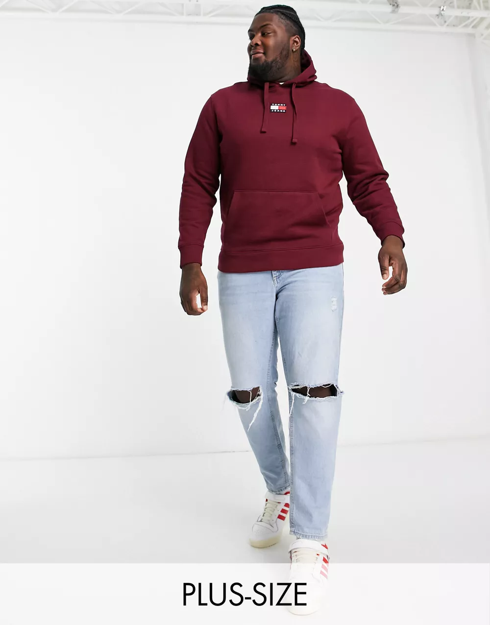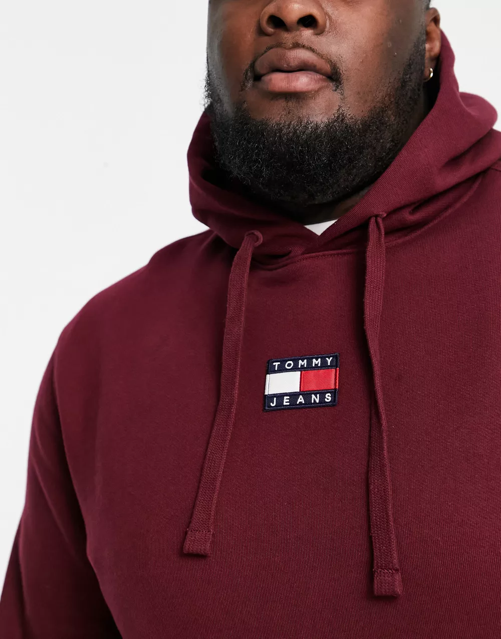 - Tommy Jeans Big & Tall badge hoodie in burgundy
