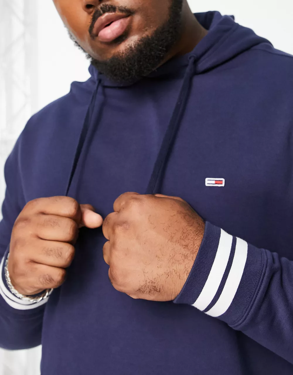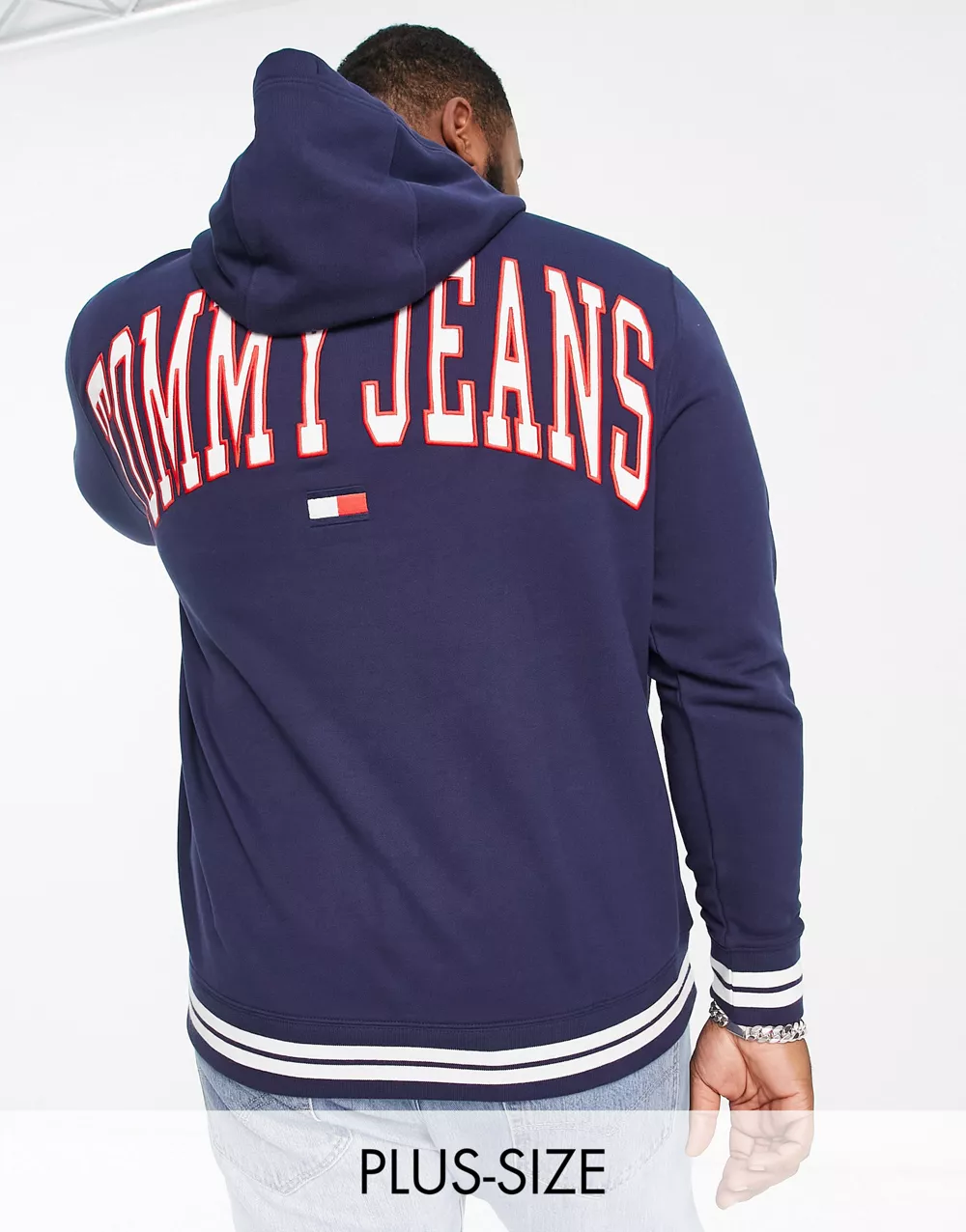 - Tommy Jeans Big & Tall collegiate logo back print hoodie in navy