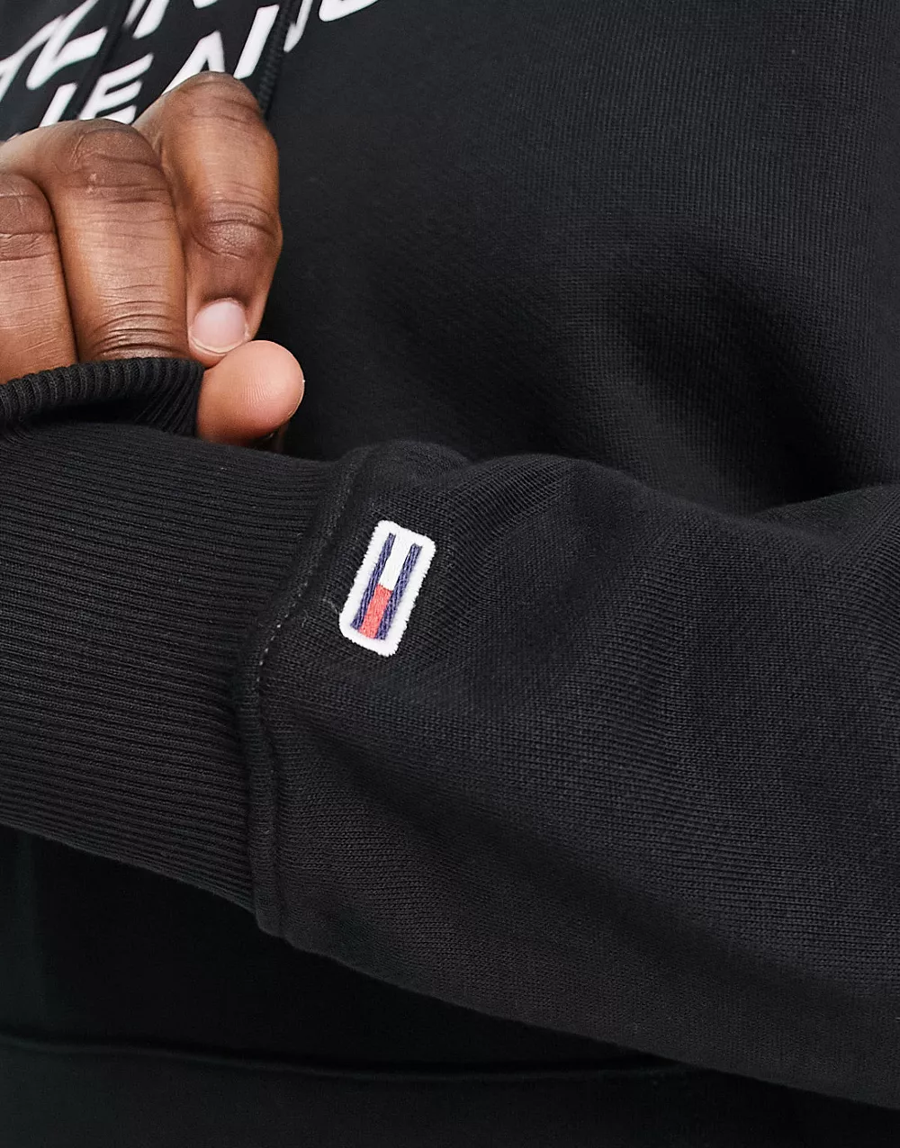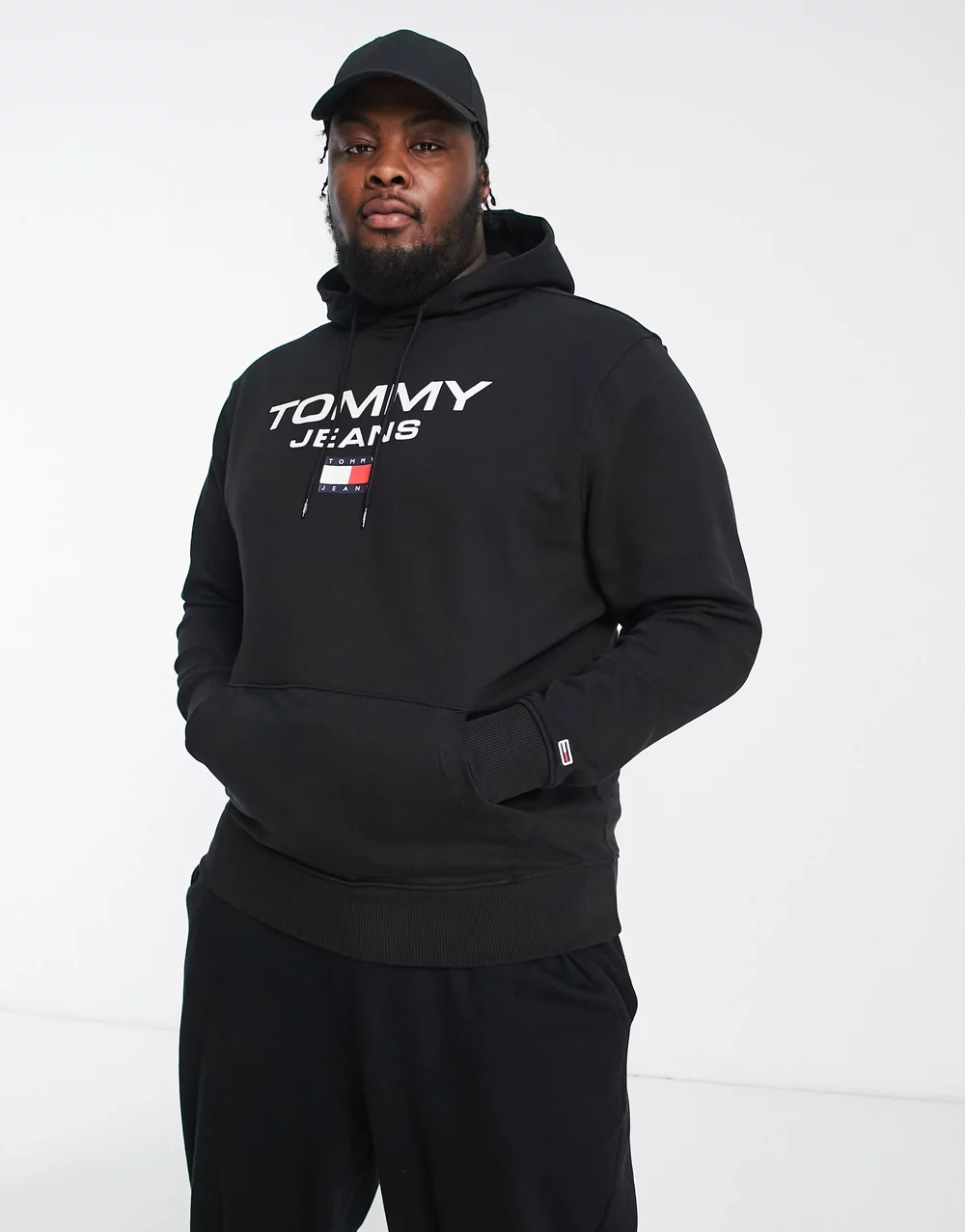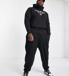 - Tommy Jeans Big & Tall flag logo hoodie in black