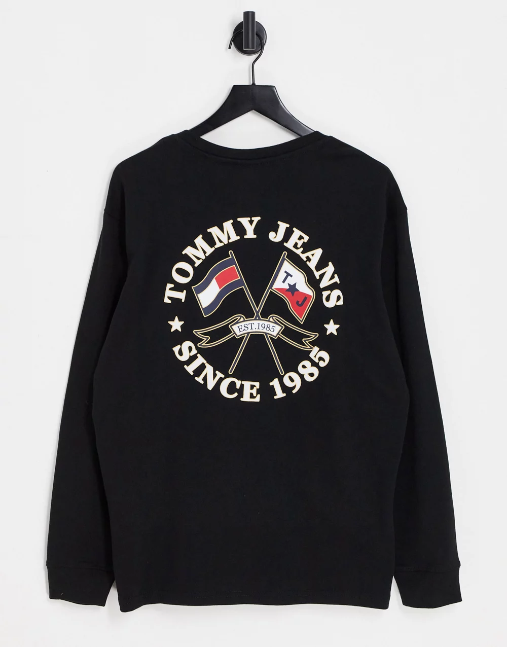 - Tommy Jeans classic fit modern prep back logo long sleeve top in black