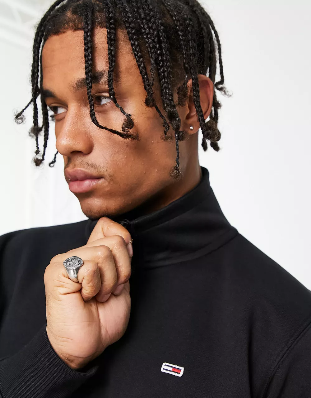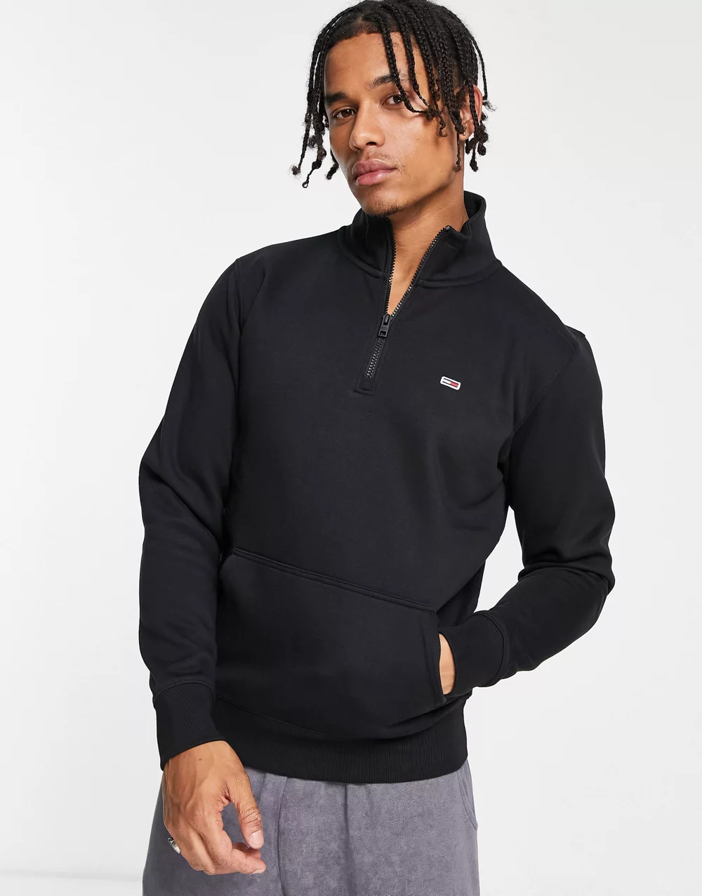 - Tommy Jeans flag logo fleece half zip sweatshirt in black