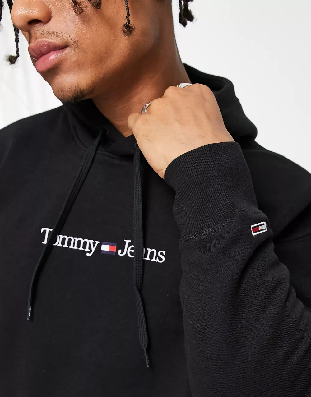 Tommy Jeans Big & Tall linear logo hoodie in black