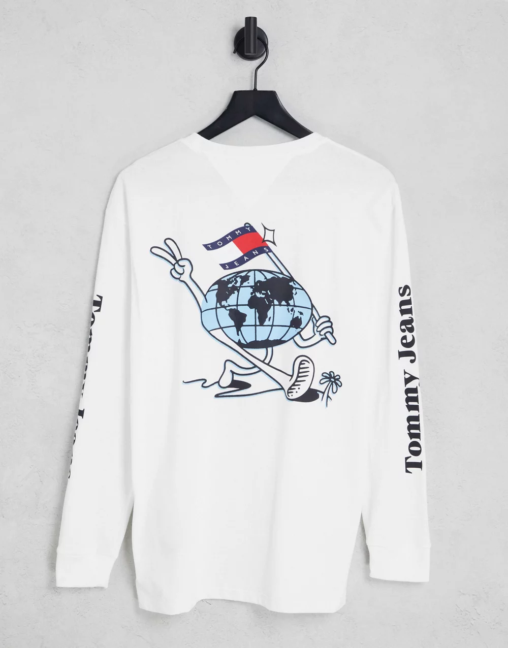 - Tommy Jeans philosotee back print long sleeve top relaxed fit in white