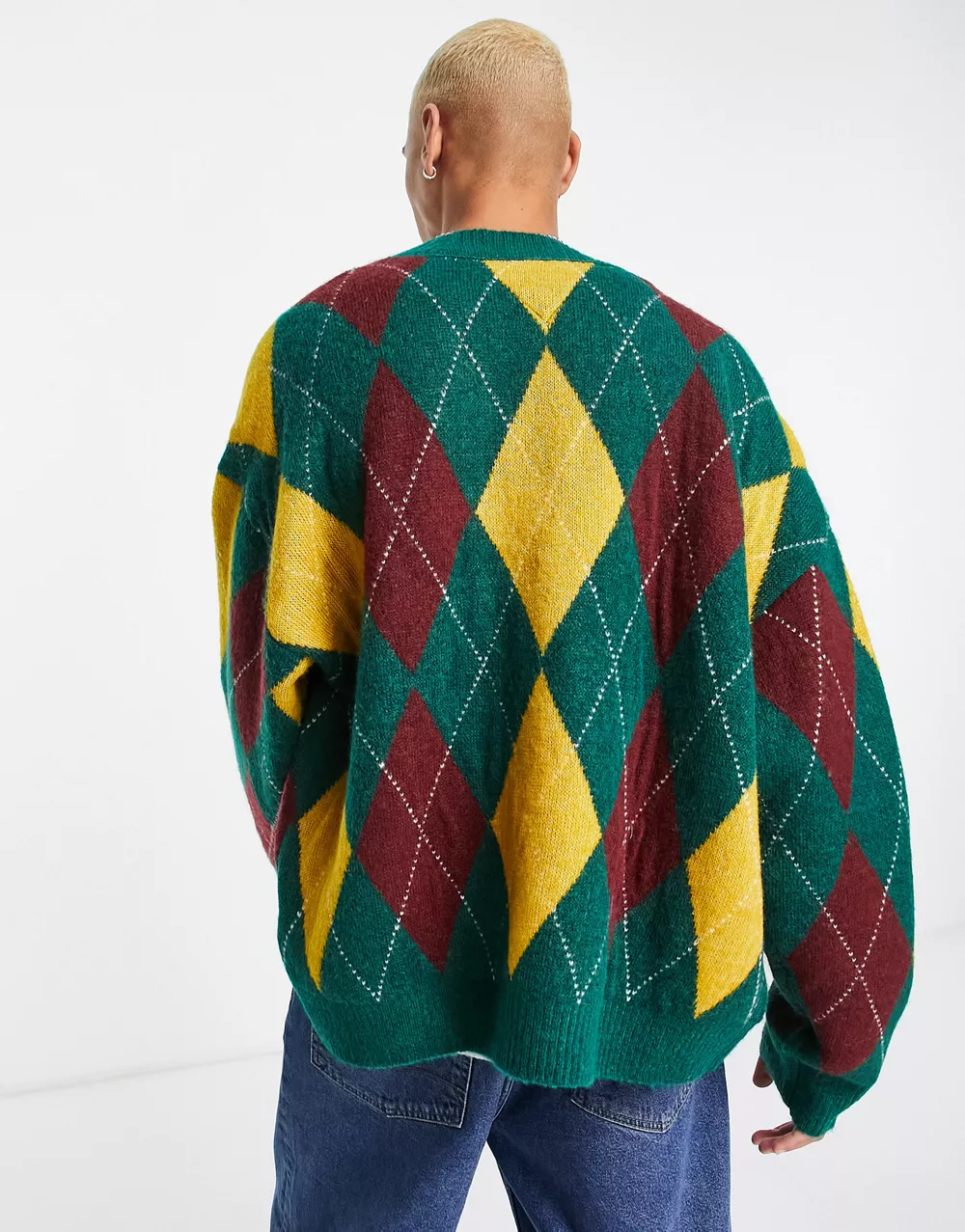 - Tommy Jeans relaxed fit argyle knit cardigan in green
