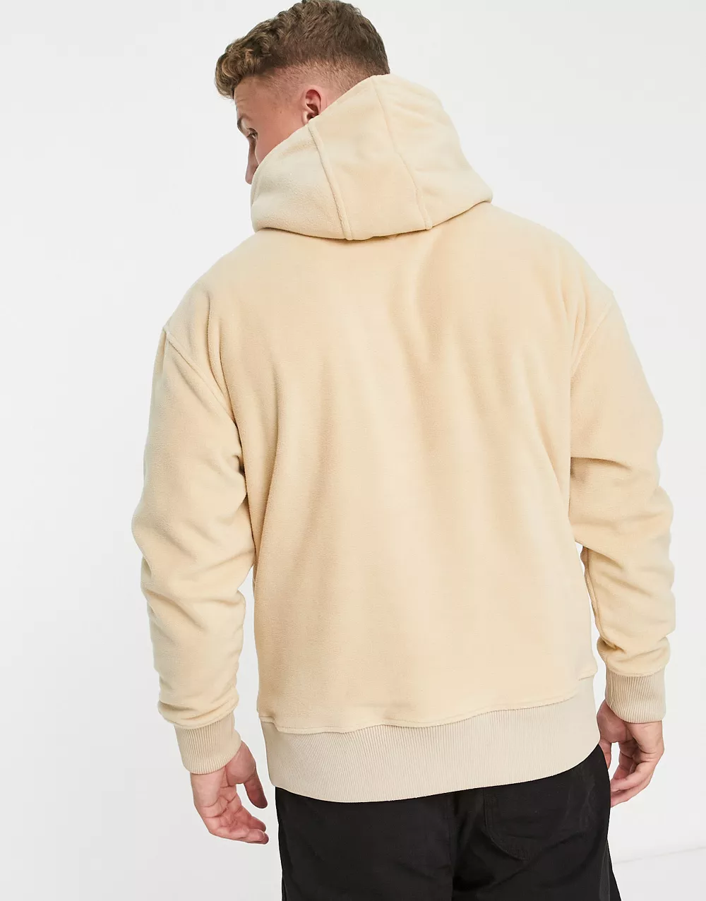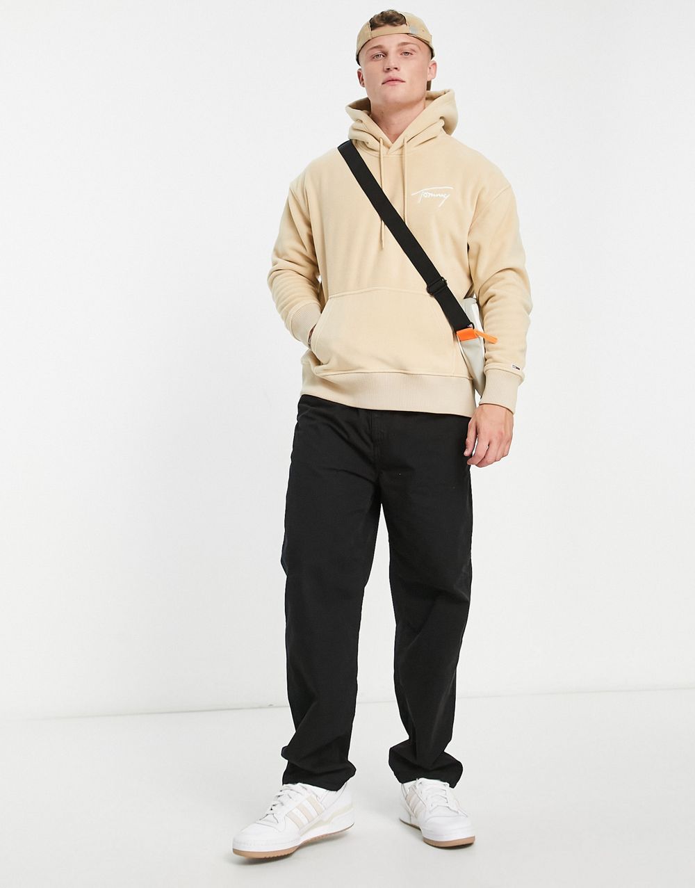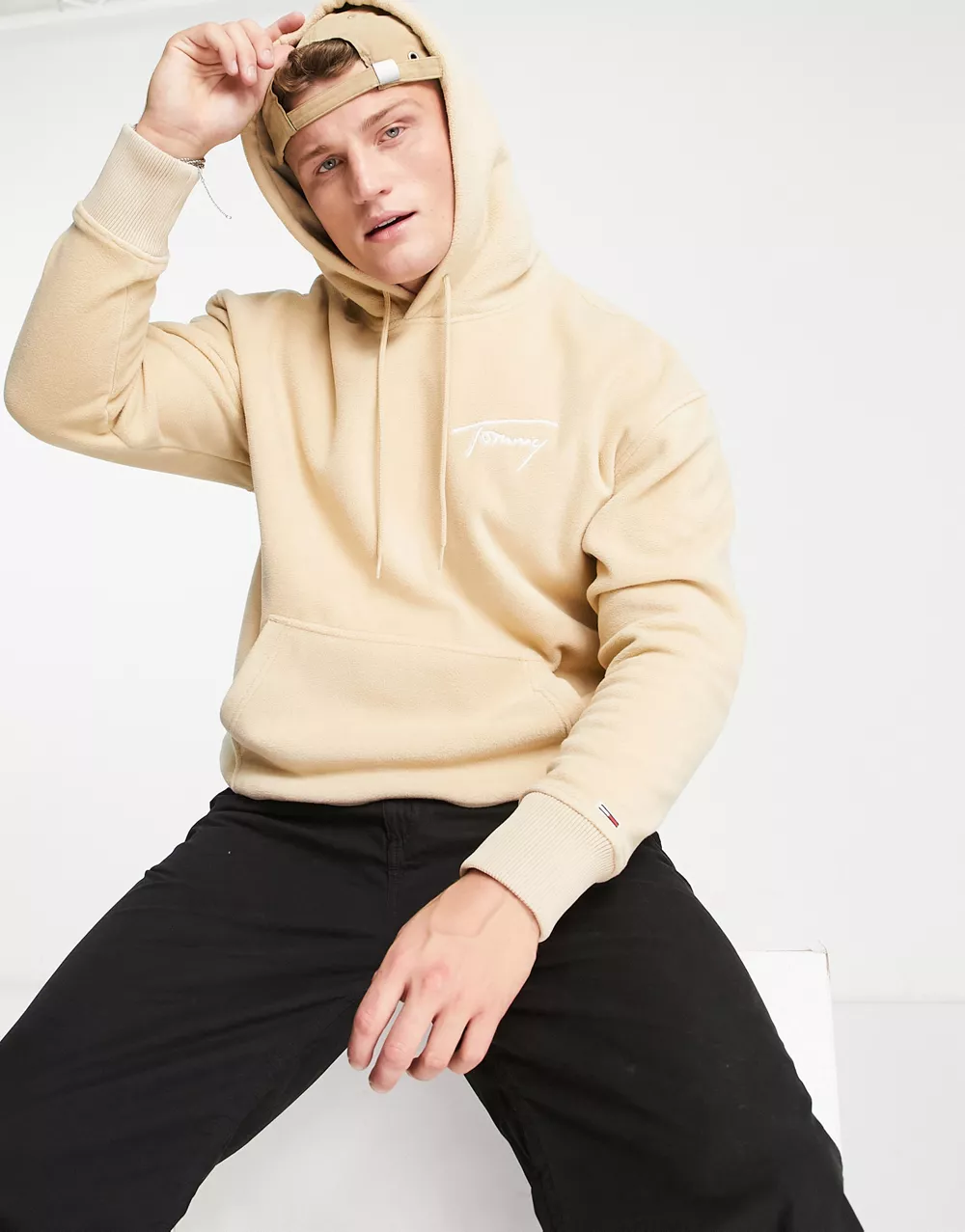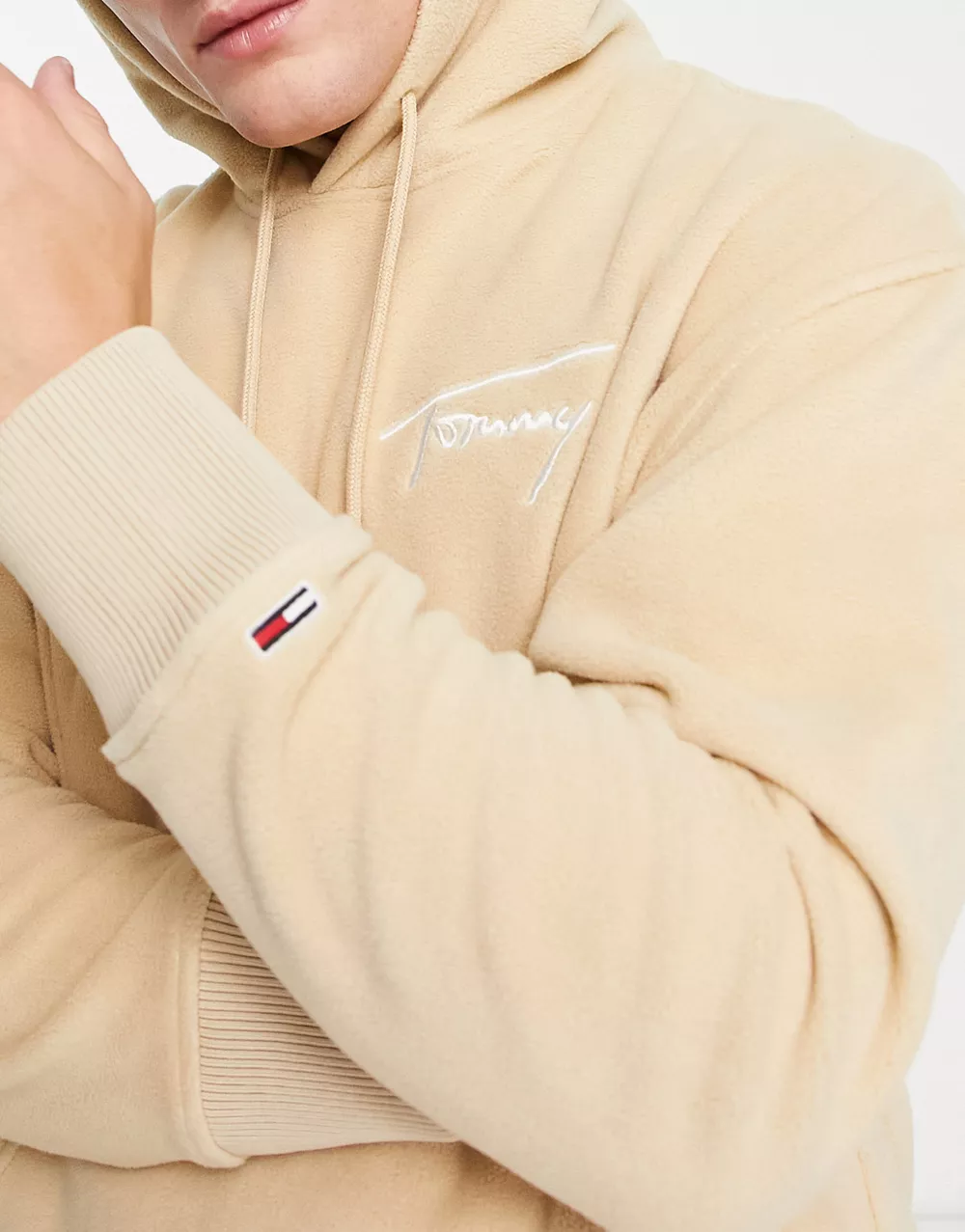 - Tommy Jeans relaxed fit polar fleece signature logo hoodie in beige