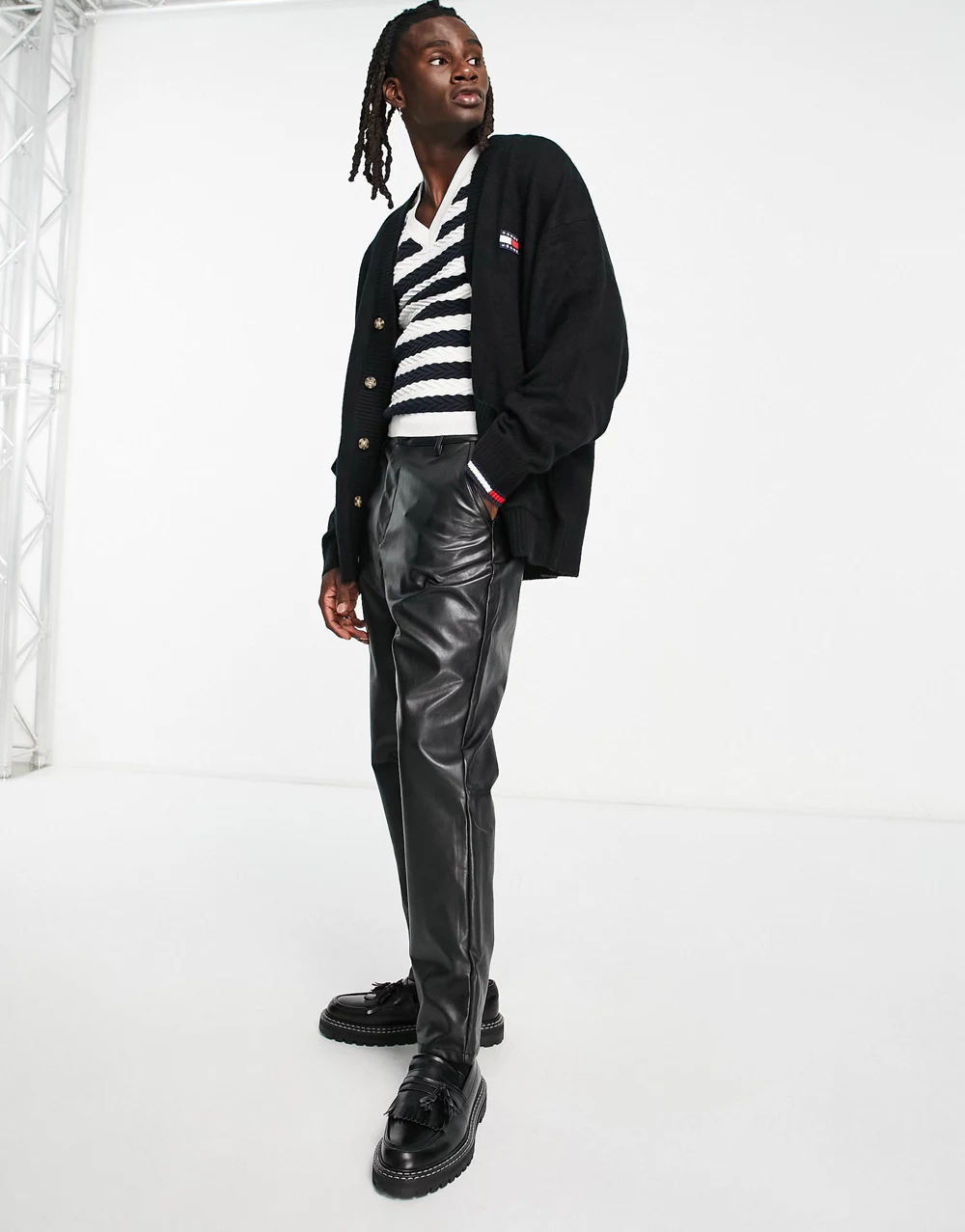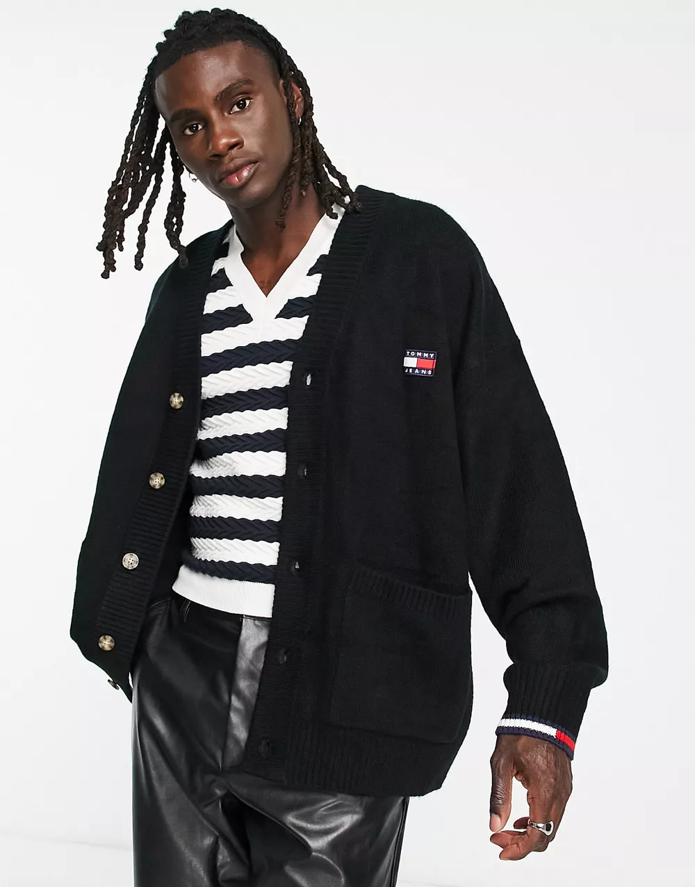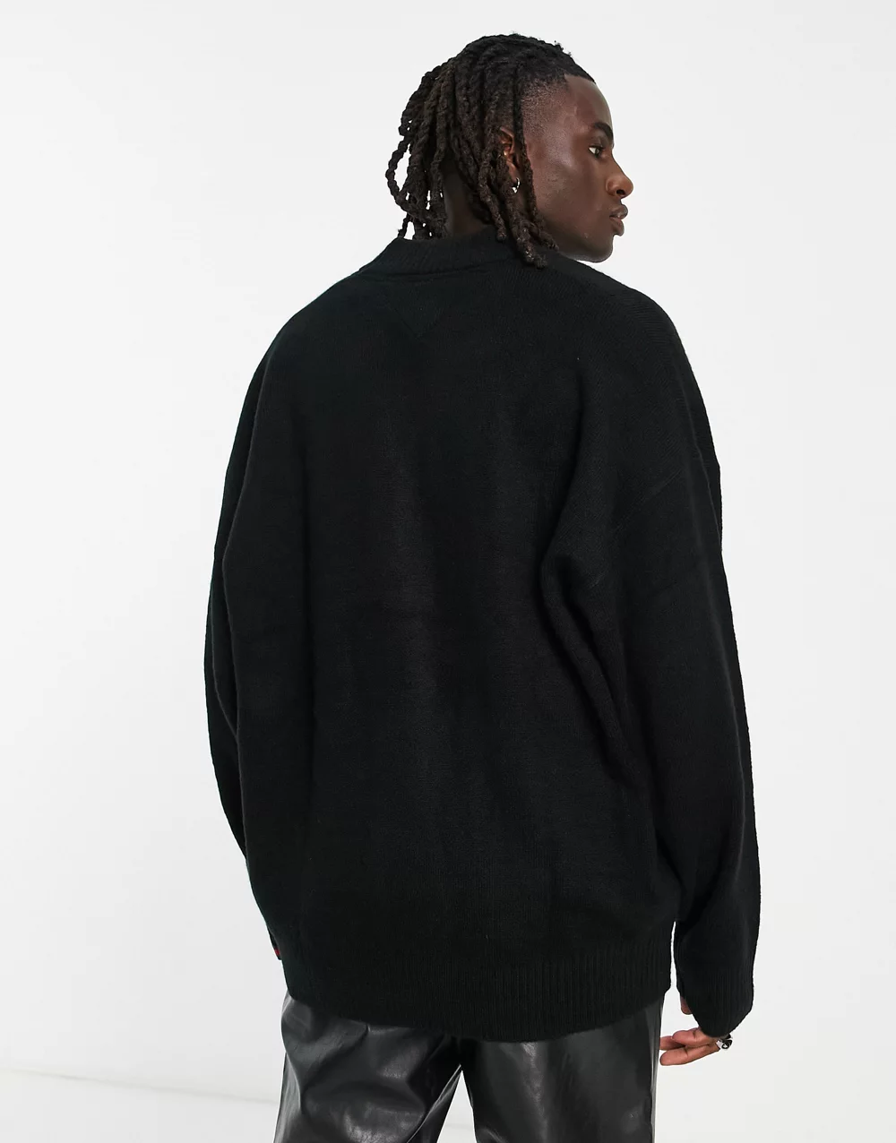 - Tommy Jeans skater fit badge logo knit cardigan in black