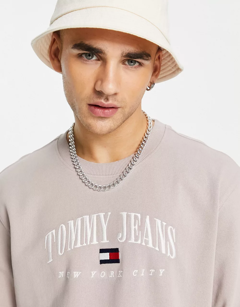 - Tommy Jeans small varsity logo sweatshirt in stone