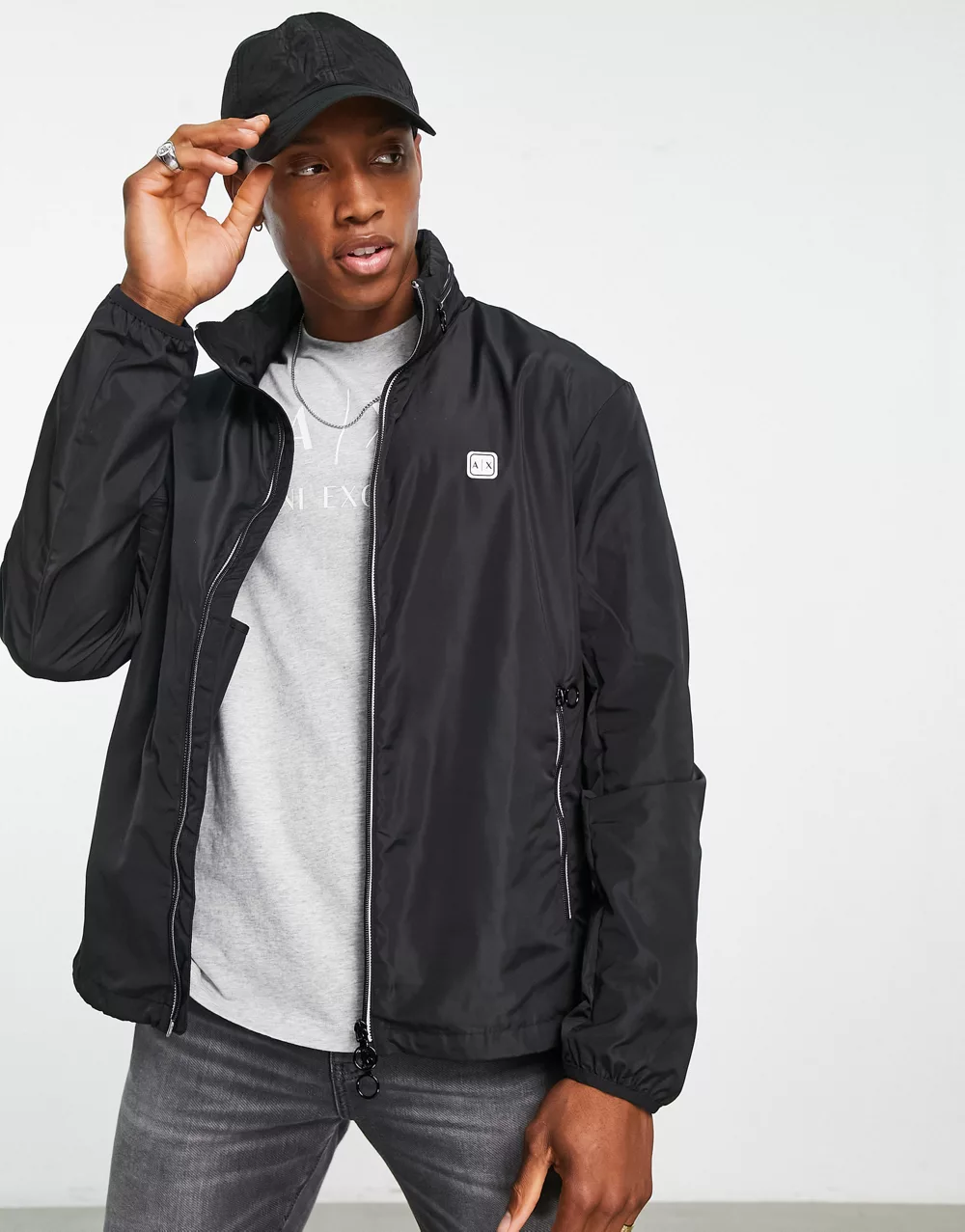 - Armani Exchange lightweight small logo jacket in black