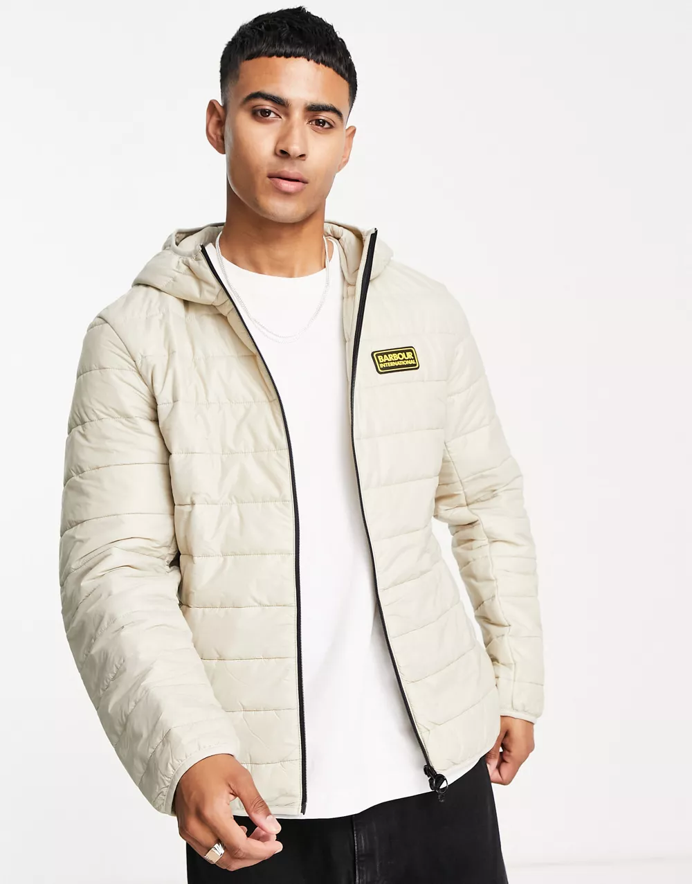 - Barbour International reed hooded quilted jacket in beige