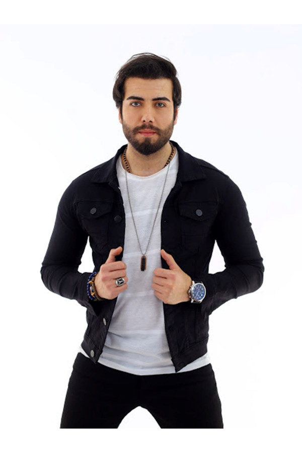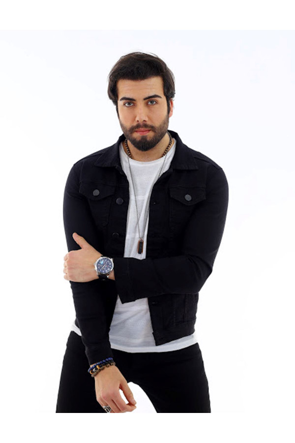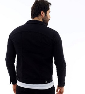 Цвет:чёрный. Мужская джинсовая куртка из лайкры с пуговицами узкого кроя.