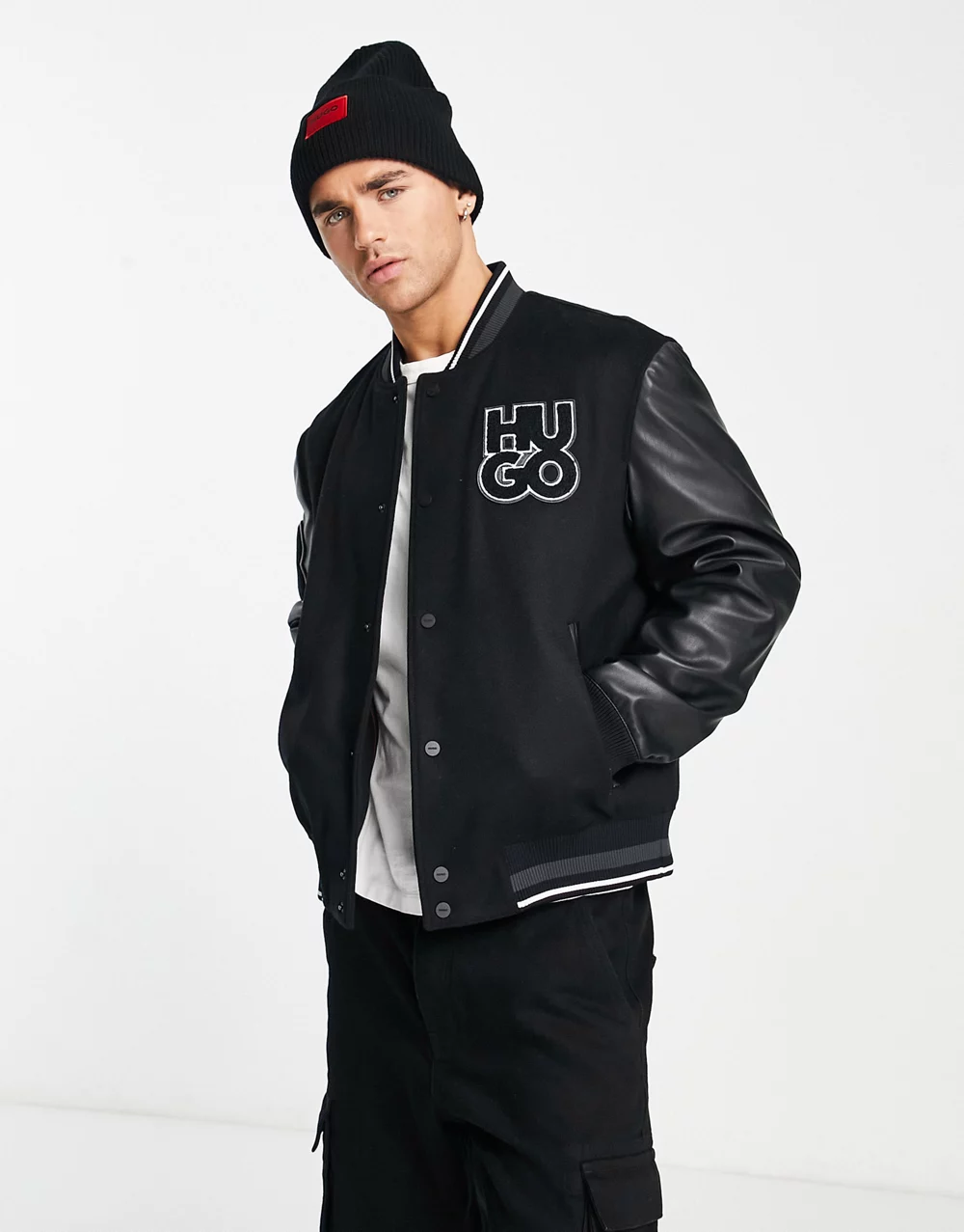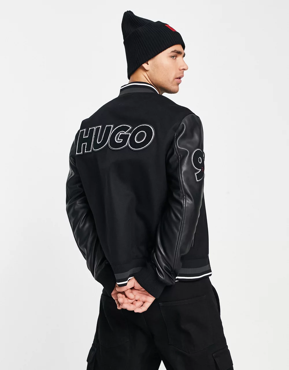 HUGO Daglion relaxed fit hoodie in black with all over animal print with back logo