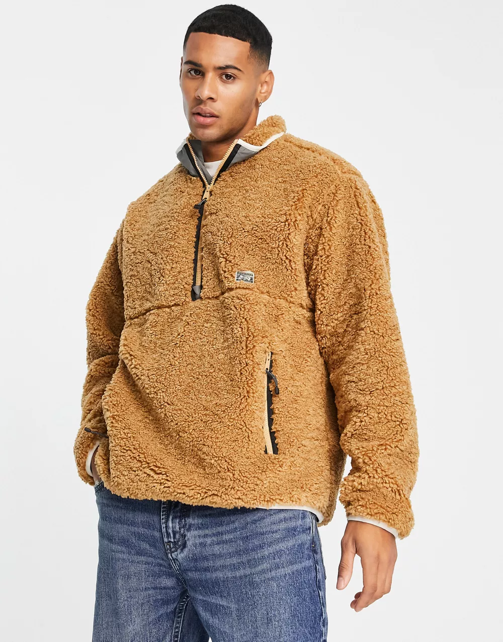 - Levi's borg half zip jacket with pockets in tan