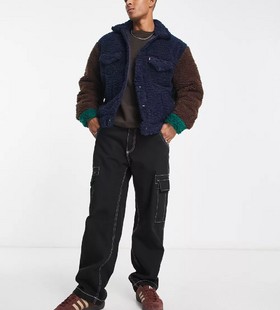 - Levi's sherpa trucker jacket in colour block navy brown green with pockets