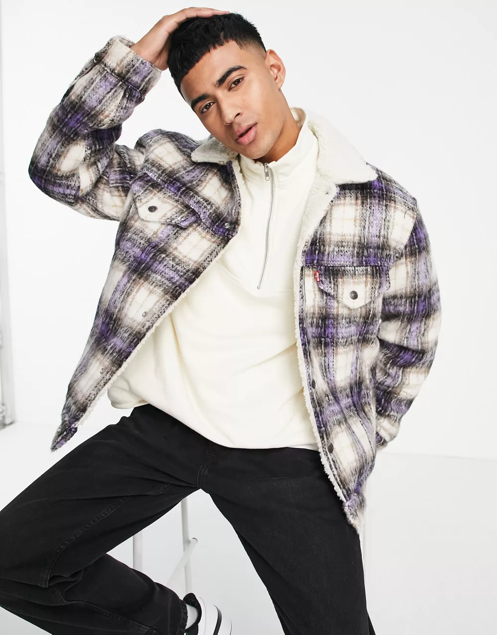Levi's type 3 sherpa lined denim trucker jacket in cream cord