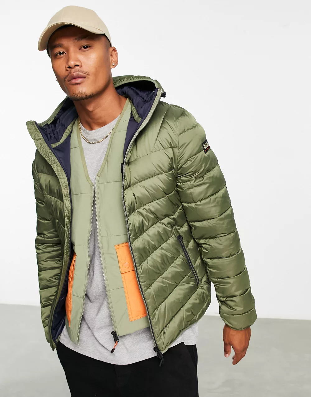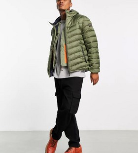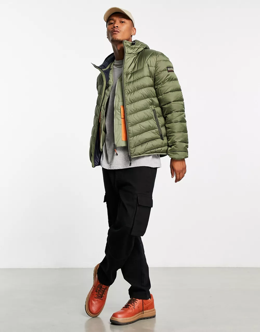 Napapijri Rainforest zip up water repellent hooded jacket in khaki