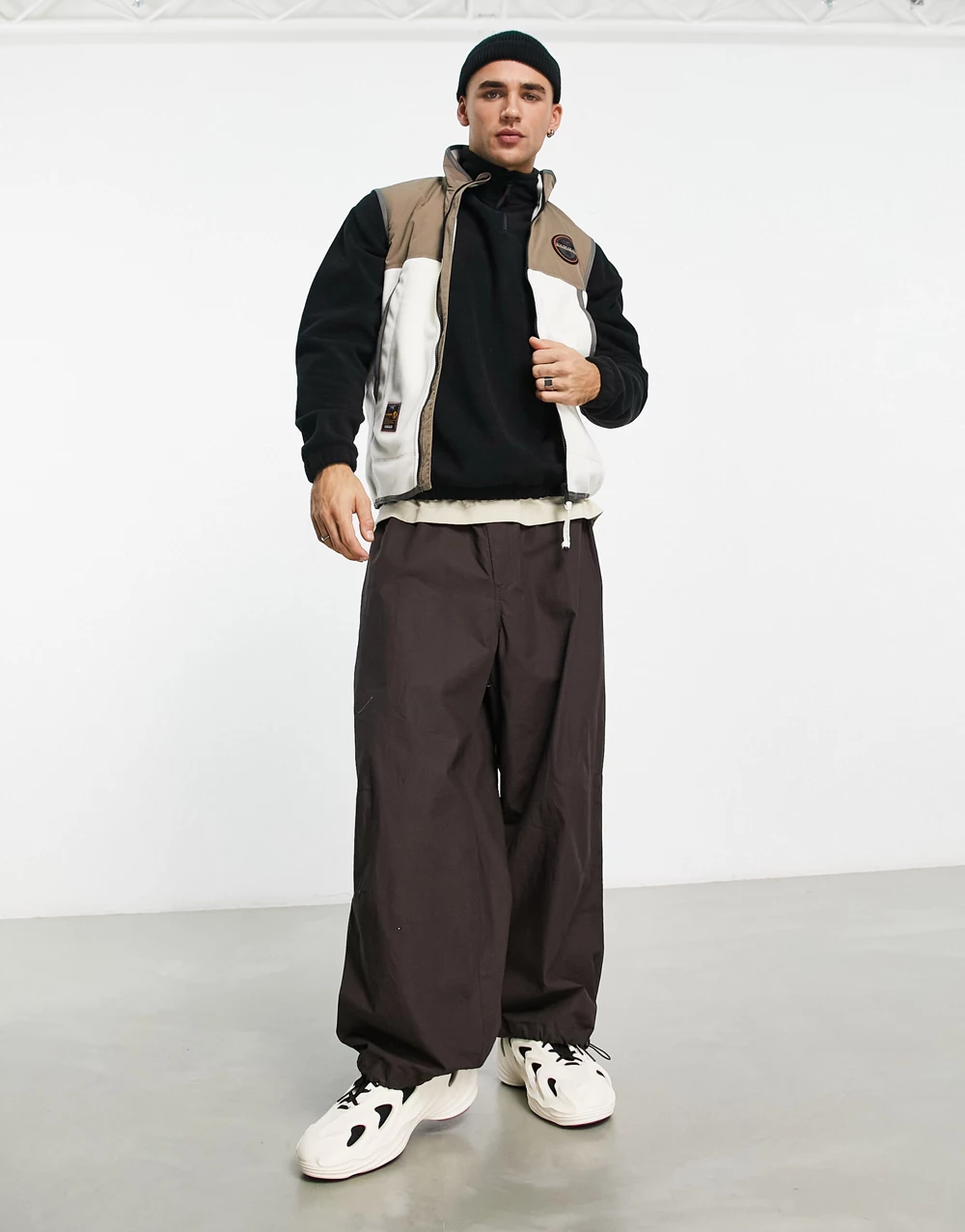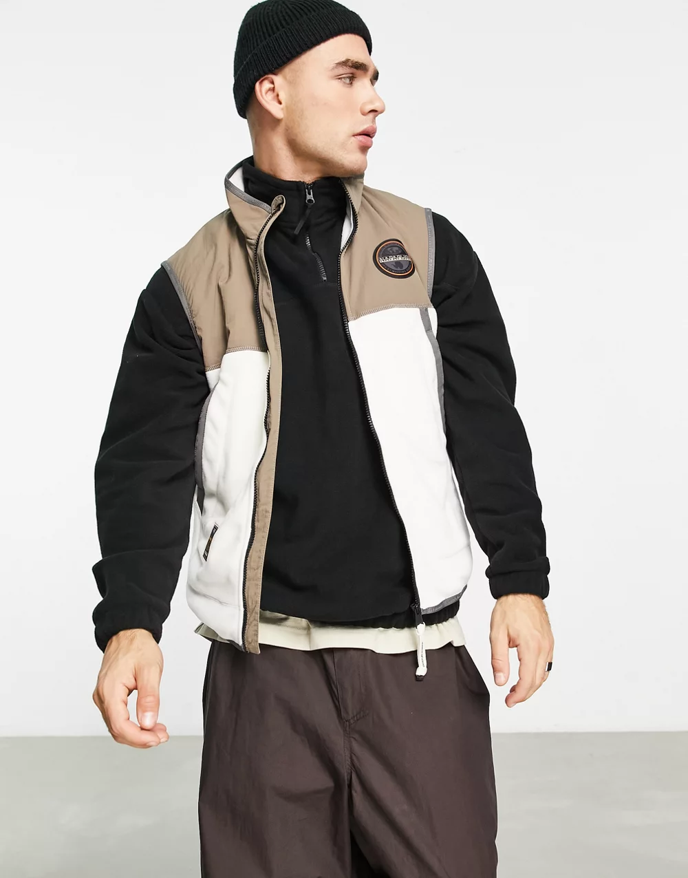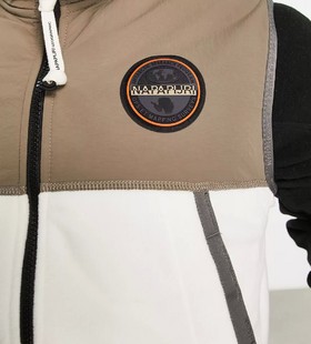 - Napapijri Ambato zip up fleece gilet in off white and brown