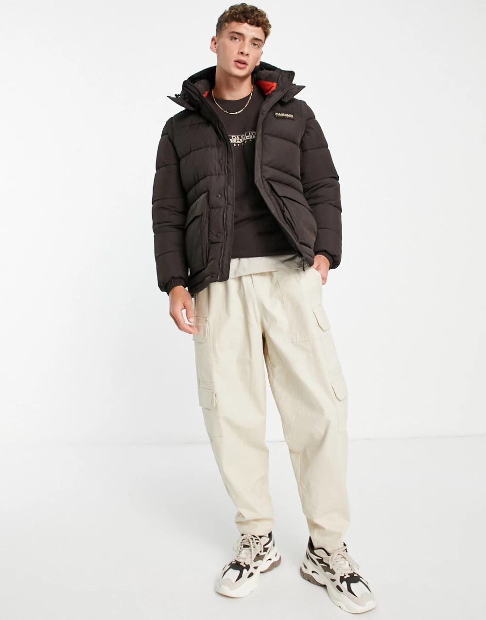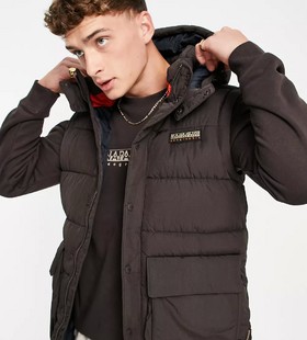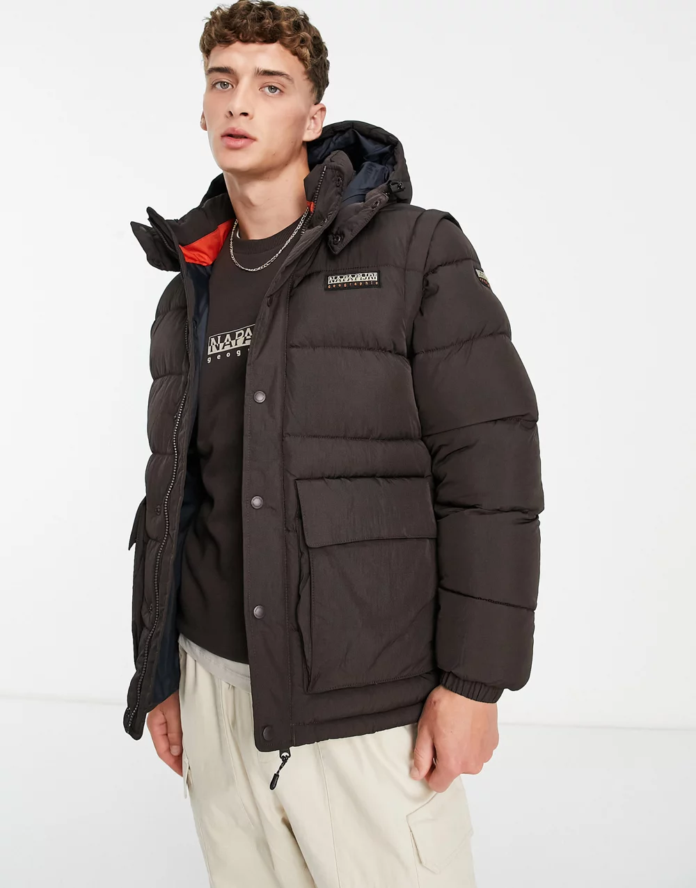 - Napapijri Chairlift convertible puffer jacket with zip off sleeves in brown