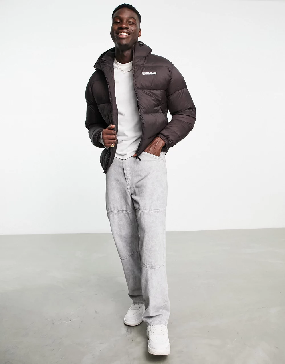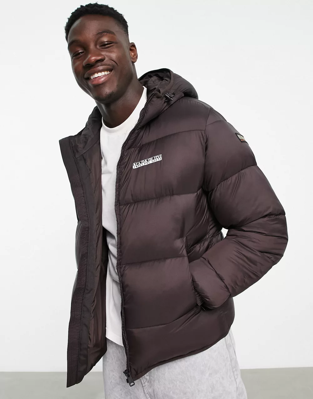 Napapijri Chairlift convertible puffer jacket with zip off sleeves in brown