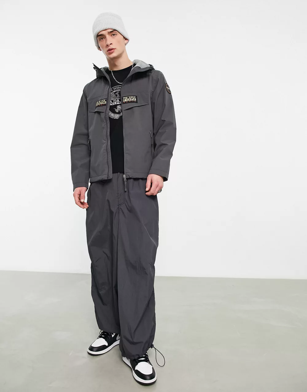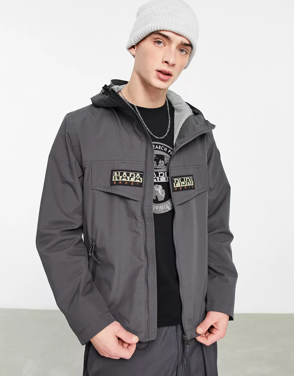 - Napapijri Rainforest zip up water repellent hooded jacket in dark grey