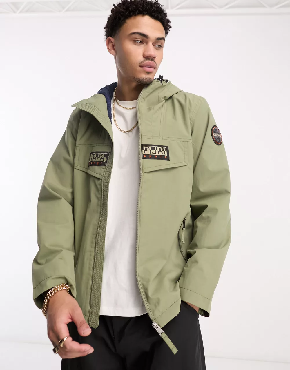 - Napapijri Rainforest zip up water repellent hooded jacket in khaki