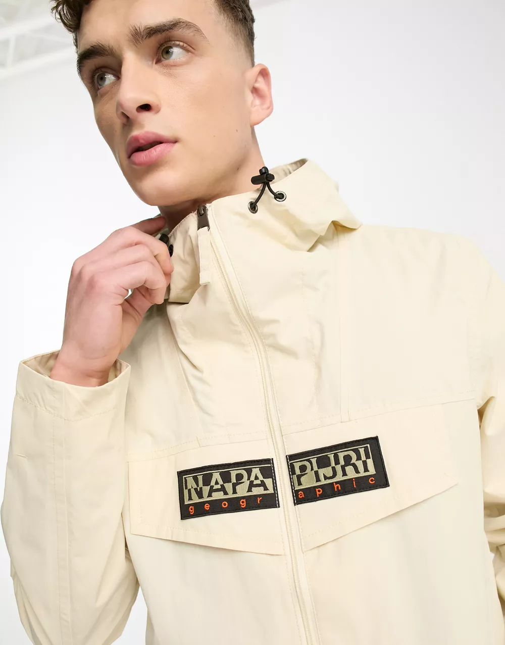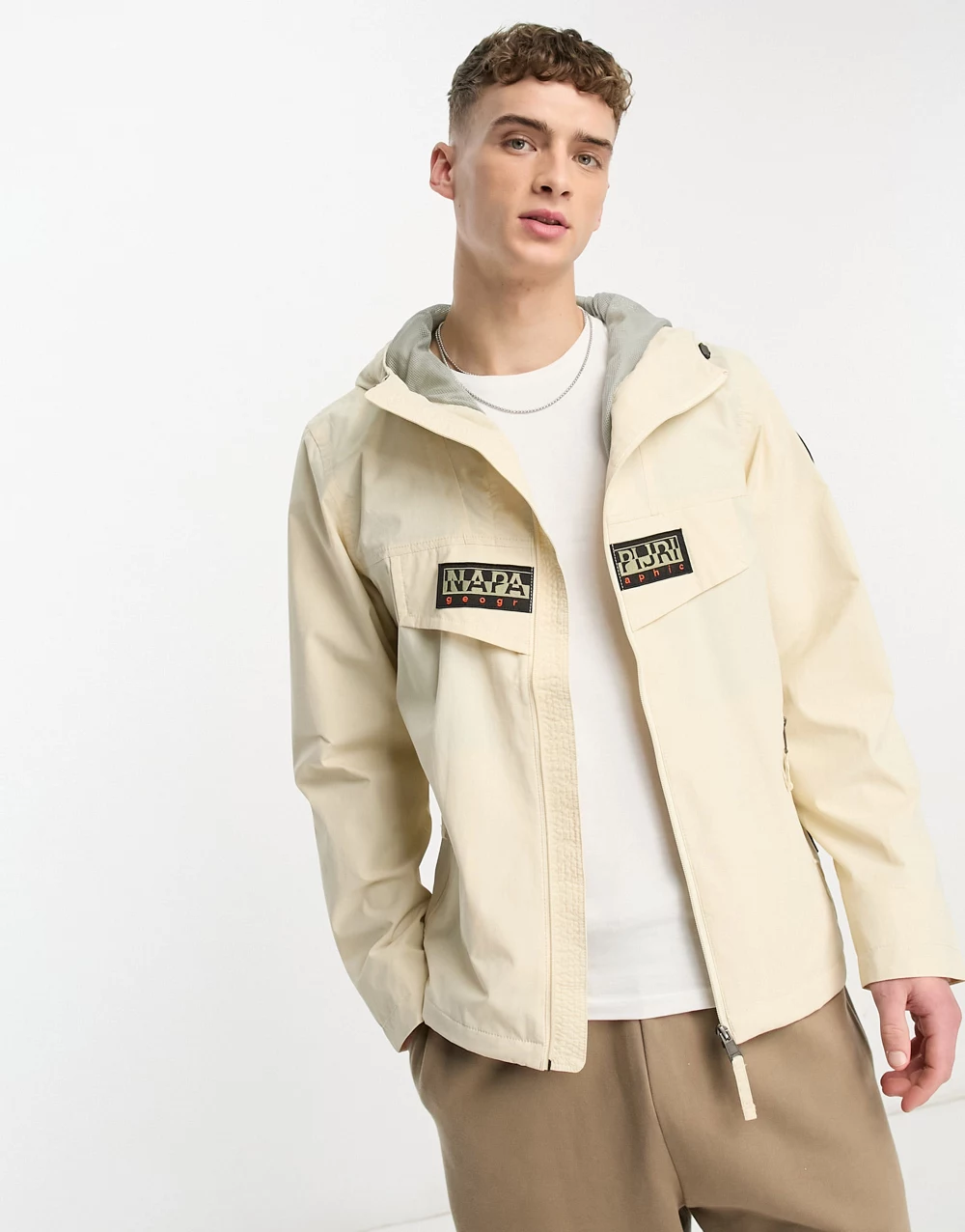- Napapijri Rainforest zip up water repellent hooded jacket in off white