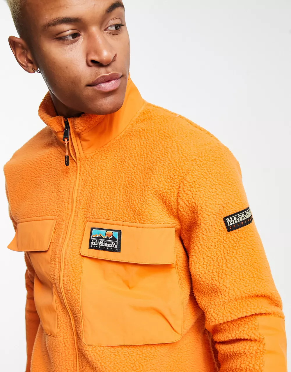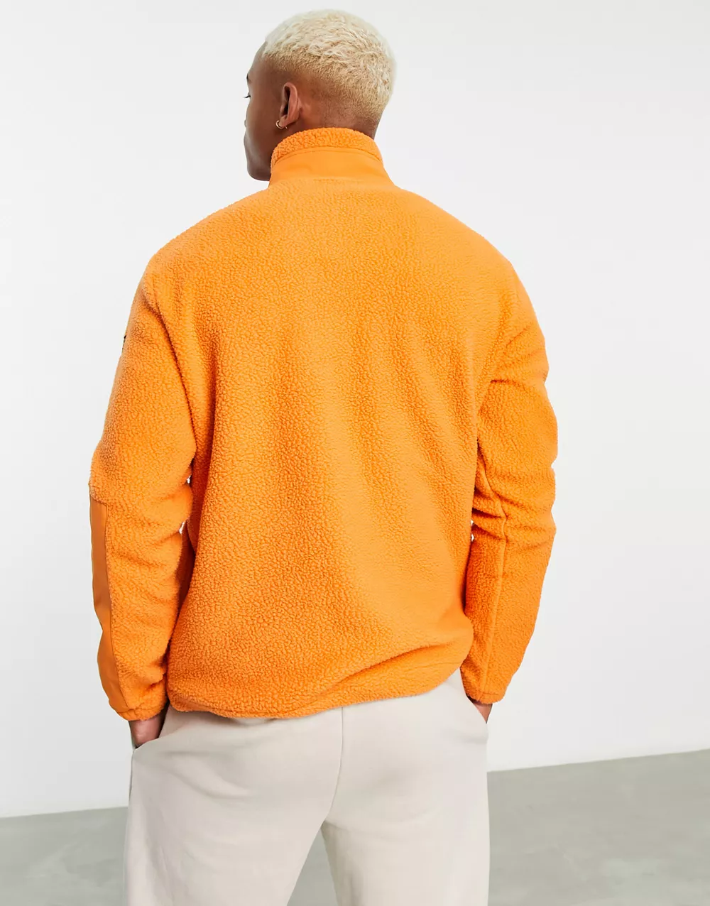 Polo Ralph Lauren icon logo borg colourblock full zip sweatshirt in cream/navy