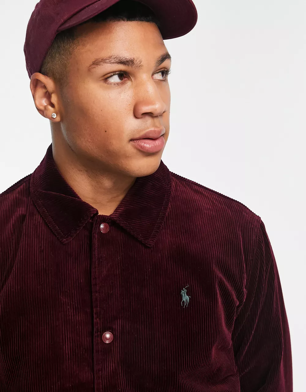 - Polo Ralph Lauren cord coach jacket in burgundy