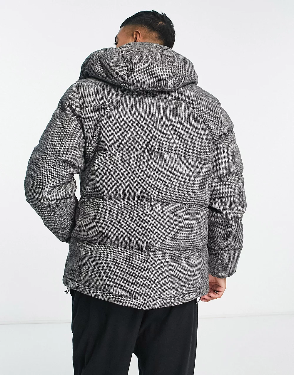 - Polo Ralph Lauren El Cap down fill herringbone wool hooded puffer jacket in black/cream