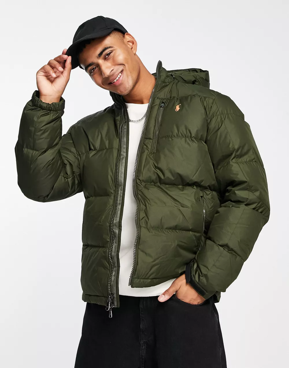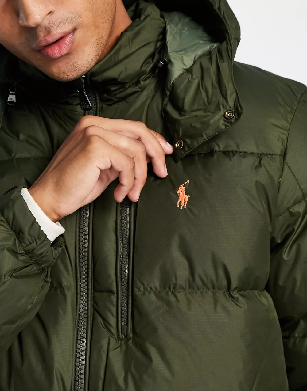 - Polo Ralph Lauren El Cap down fill hooded puffer jacket in olive green