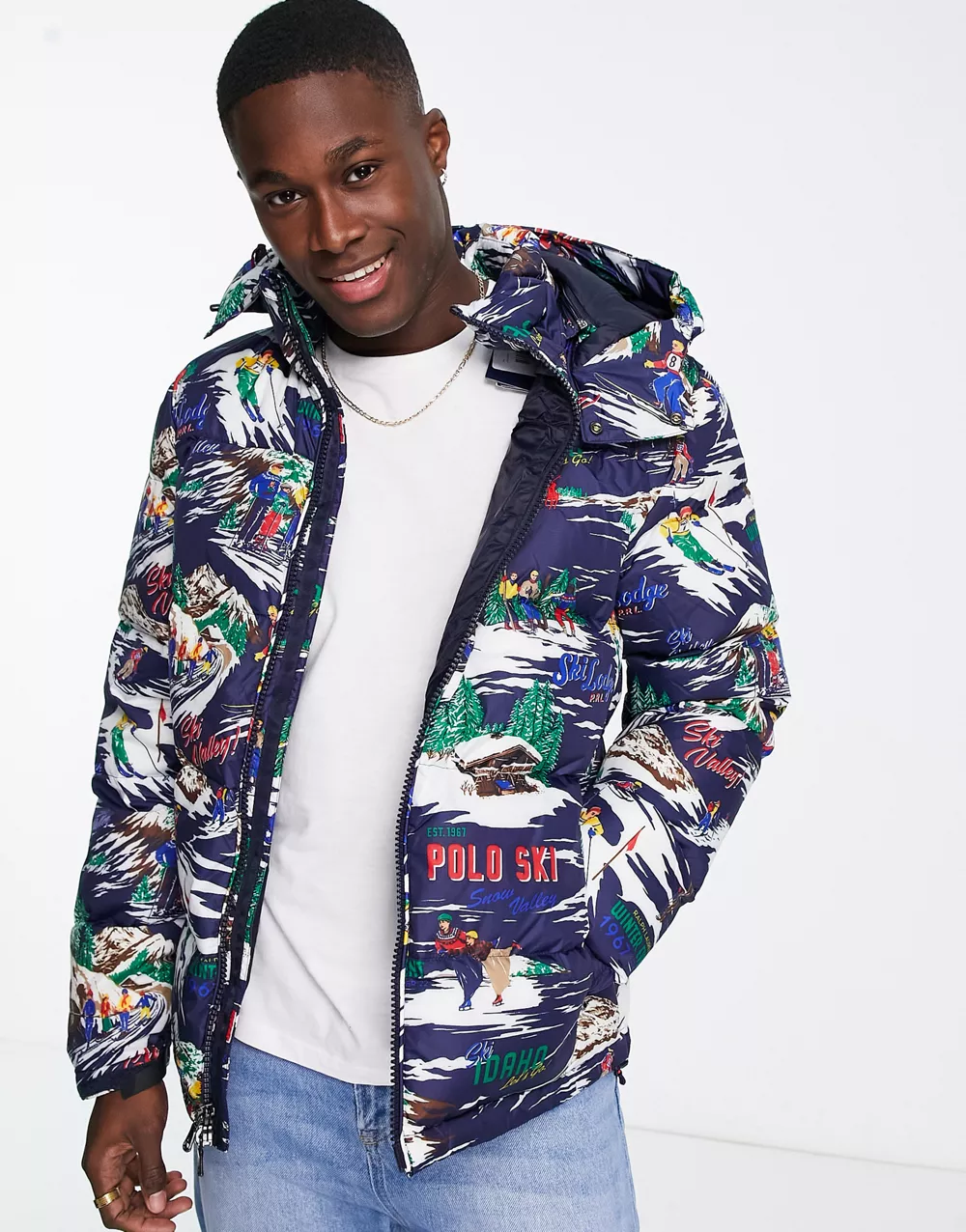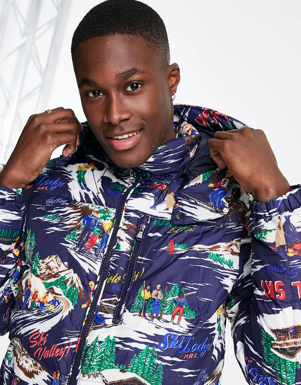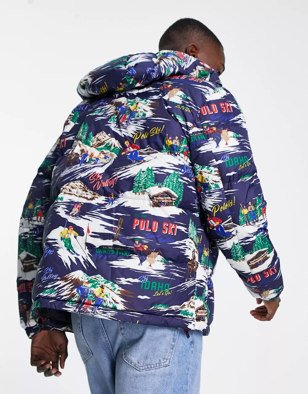 - Polo Ralph Lauren El Cap down fill snow traverse print hooded puffer jacket in multi