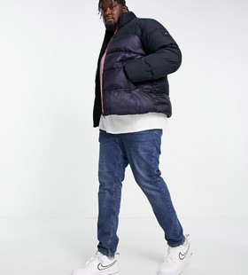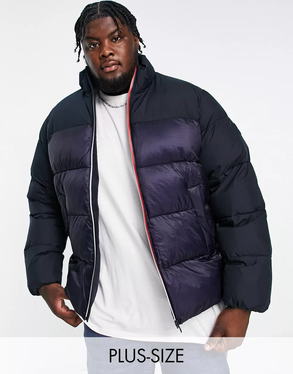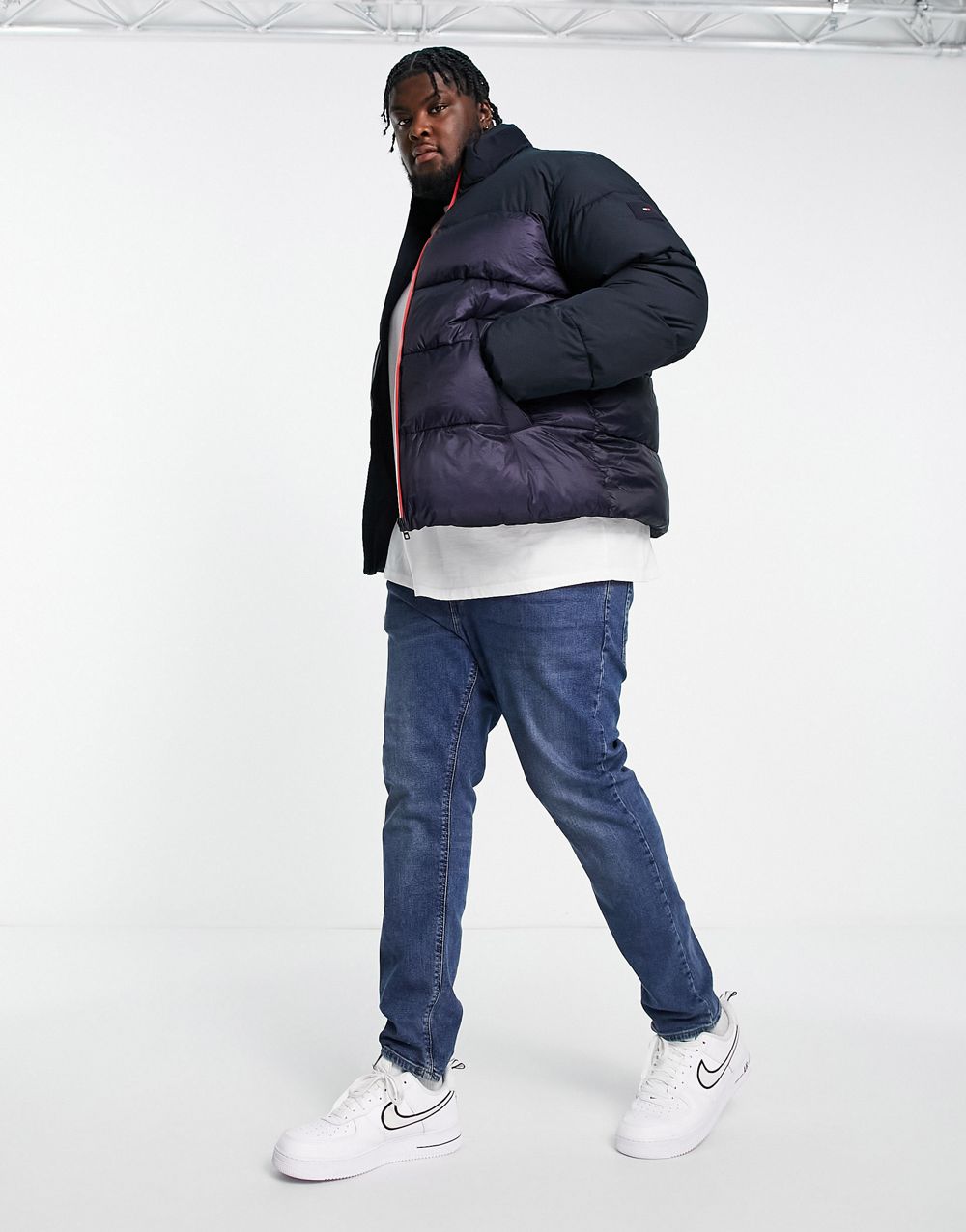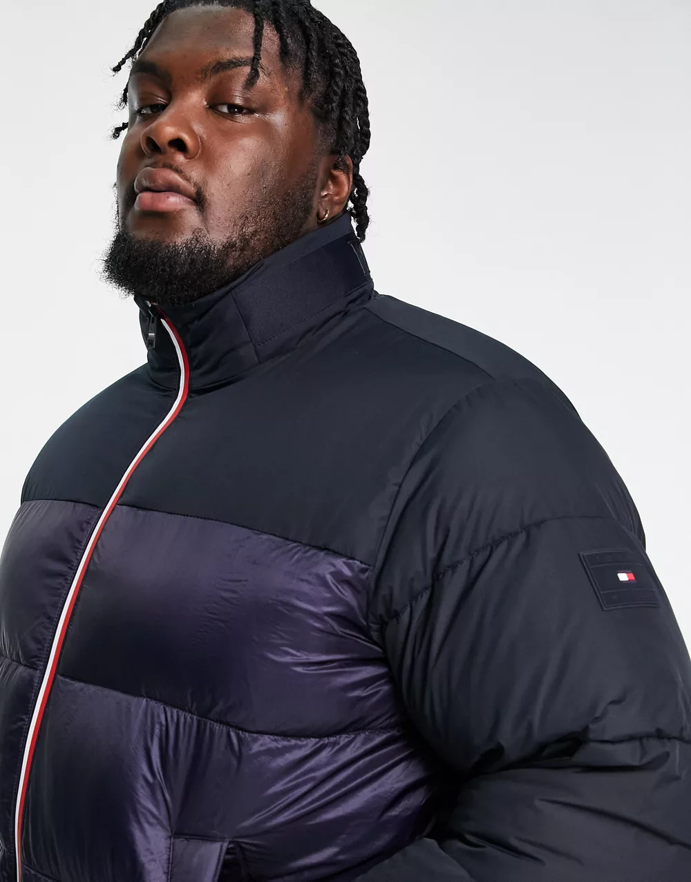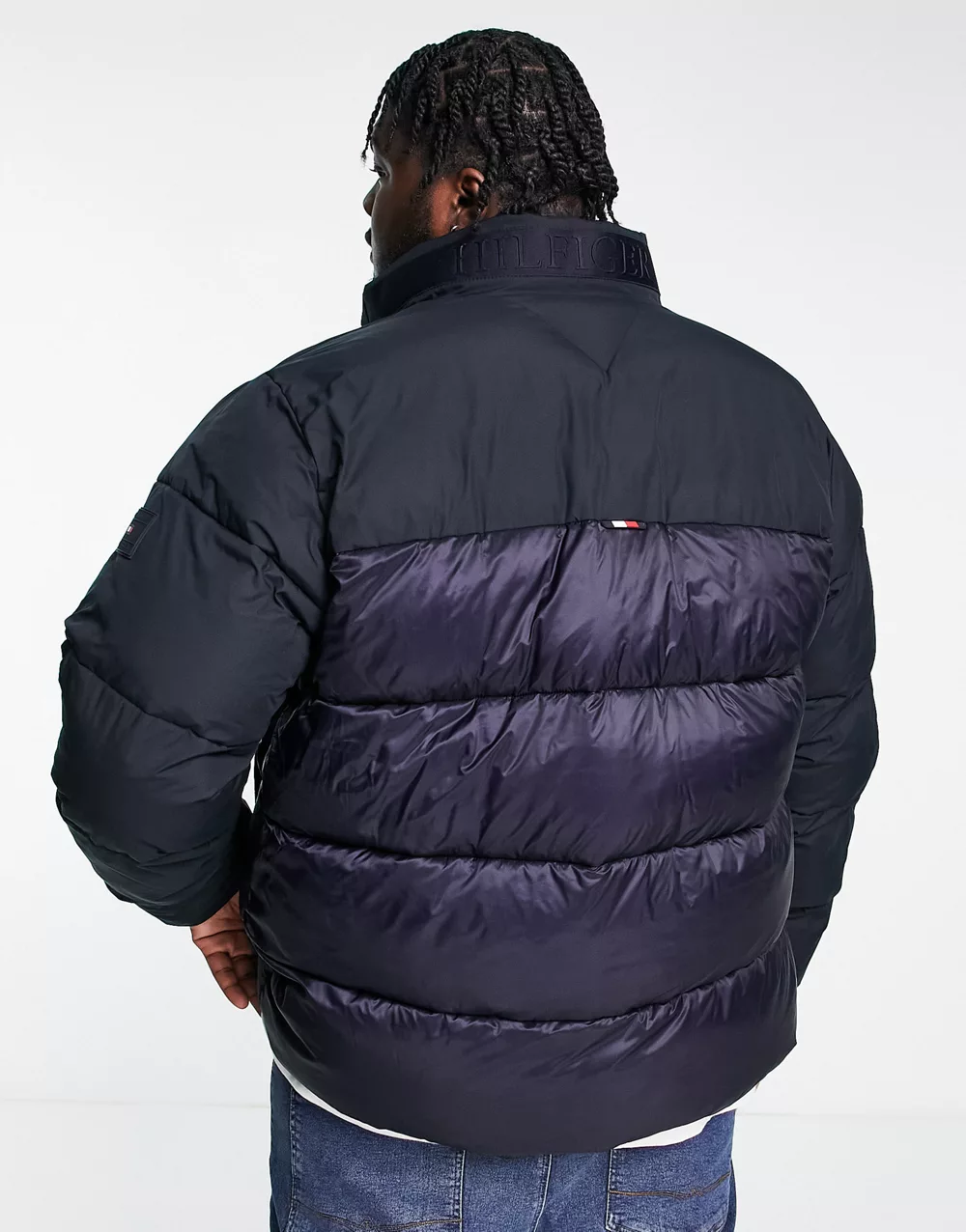 - Tommy Hilfiger Big & Tall tech stand collar puffer jacket in navy