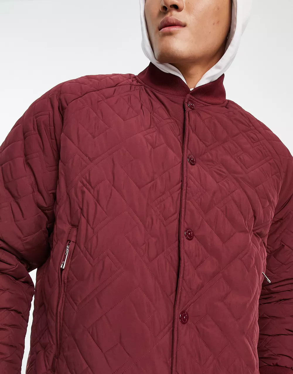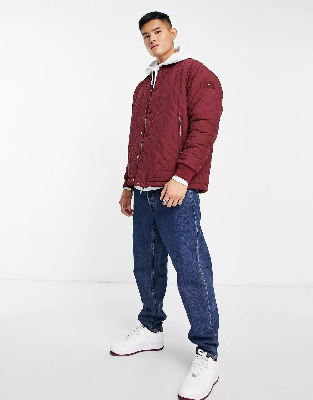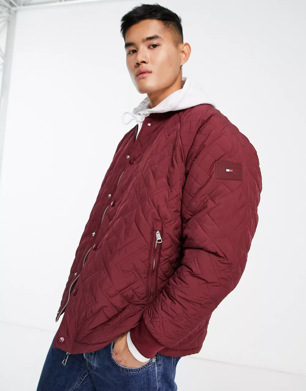 - Tommy Hilfiger monogram quilted bomber jacket in burgundy 2227159888-50