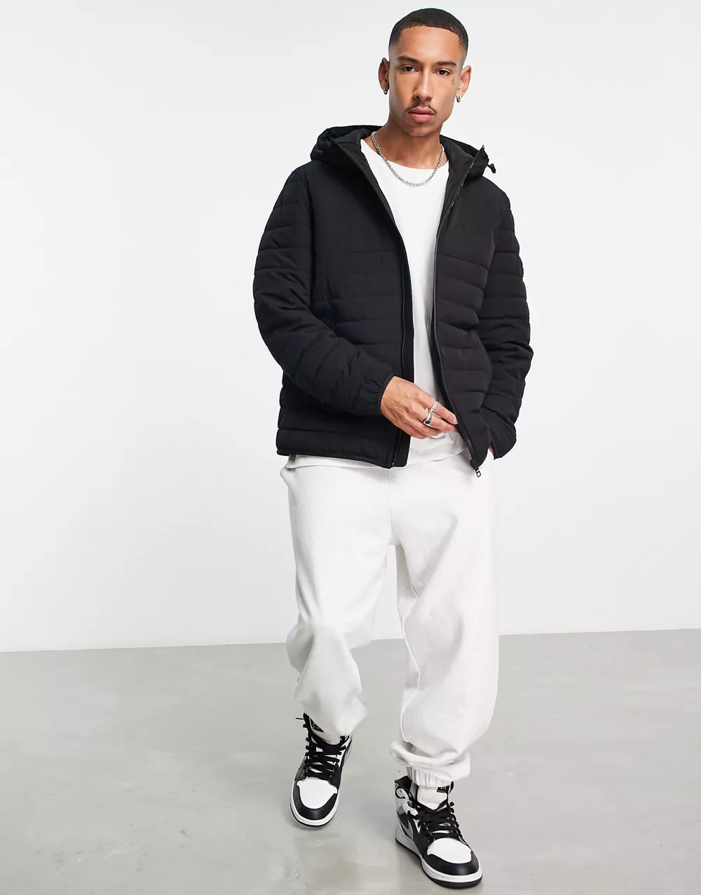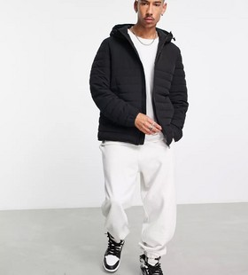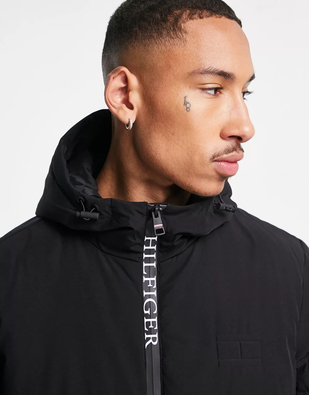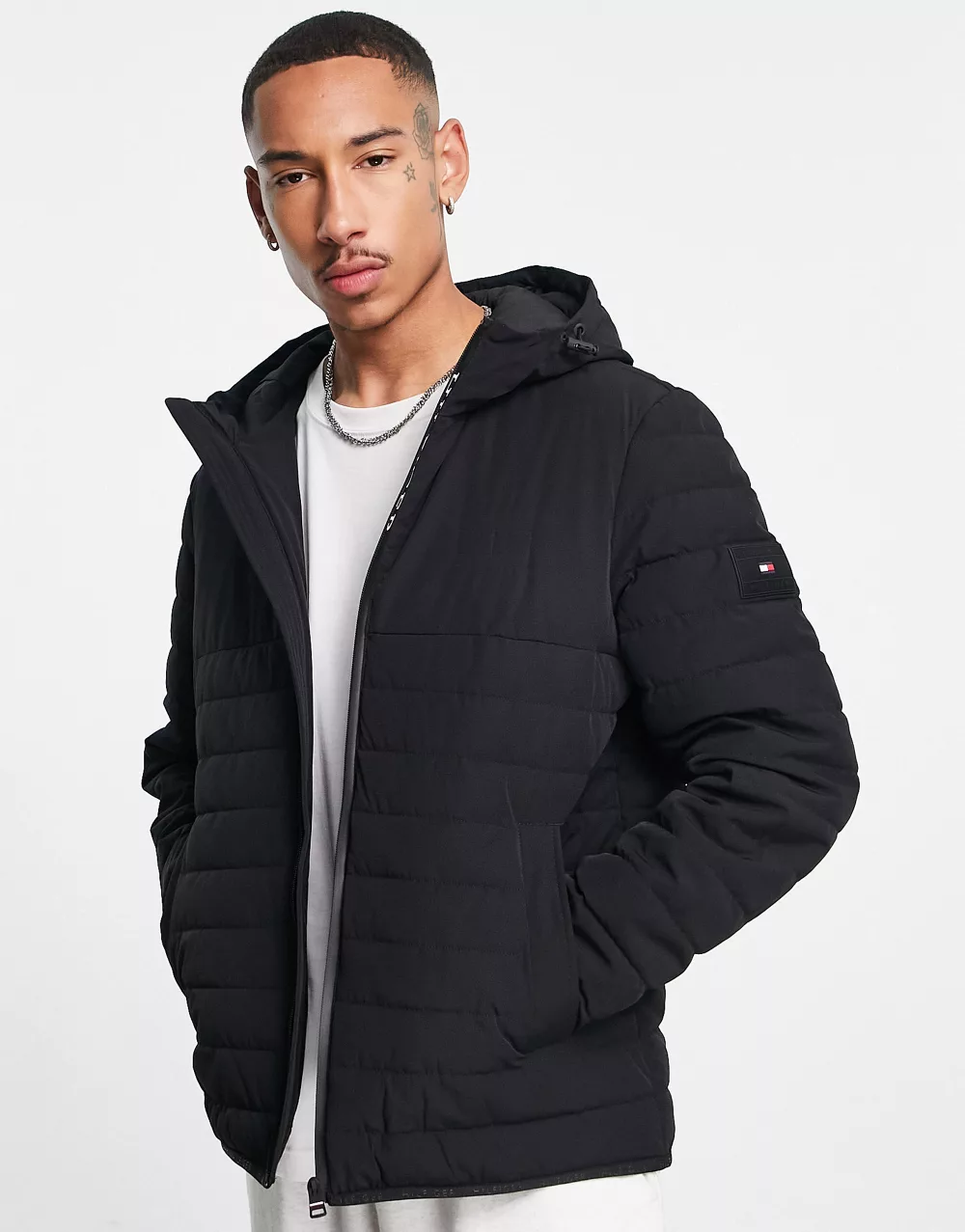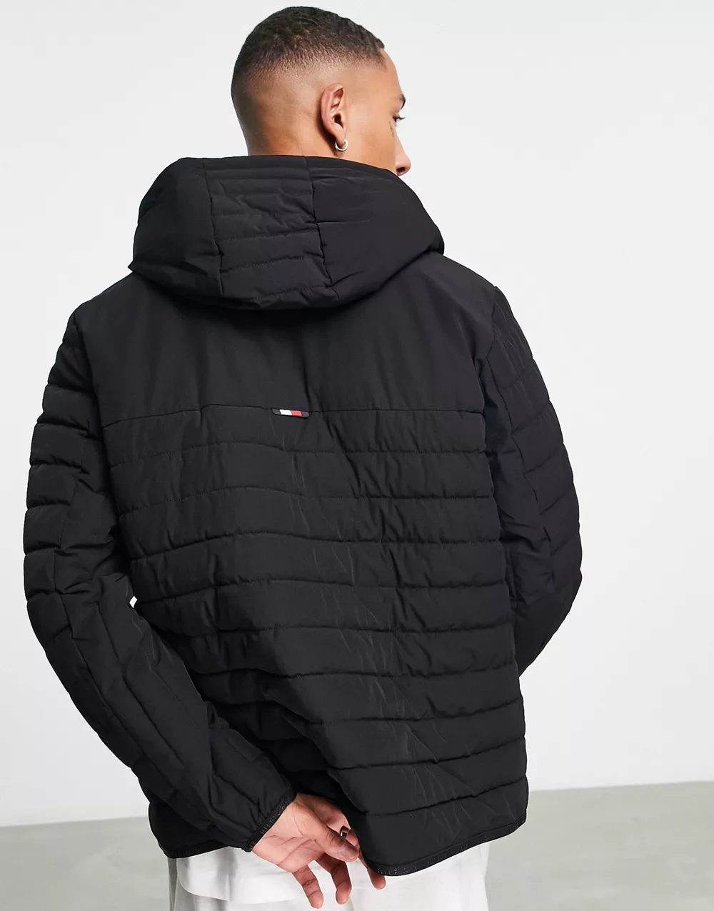 - Tommy Hilfiger nylon blend stretch hooded puffer jacket in black - BLACK