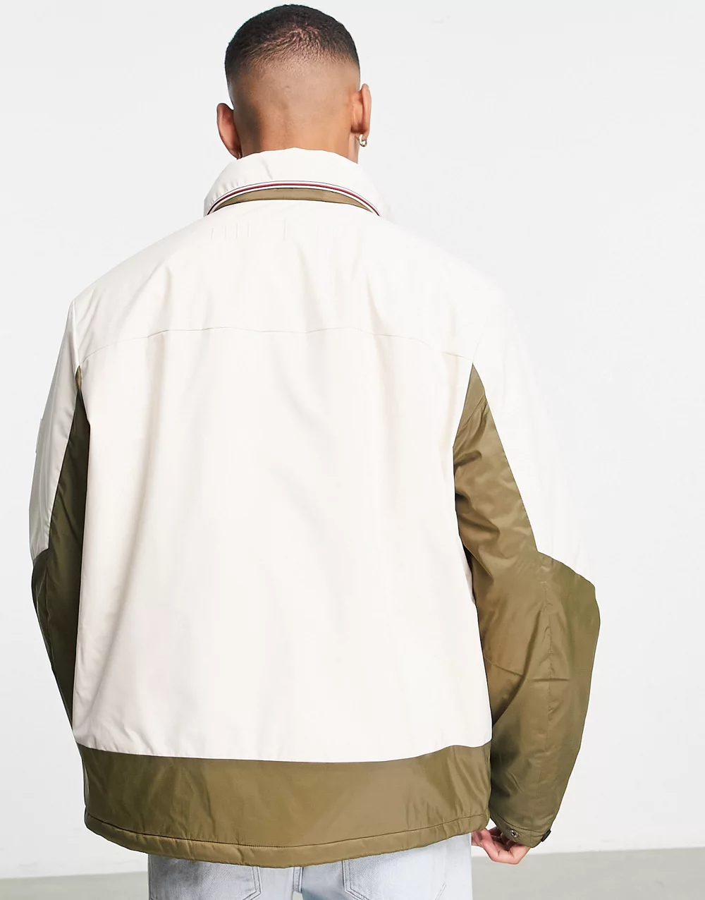 - Tommy Hilfiger polyester blend tech stand collar colourblock jacket in cream - CREAM