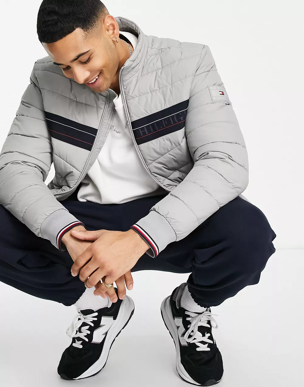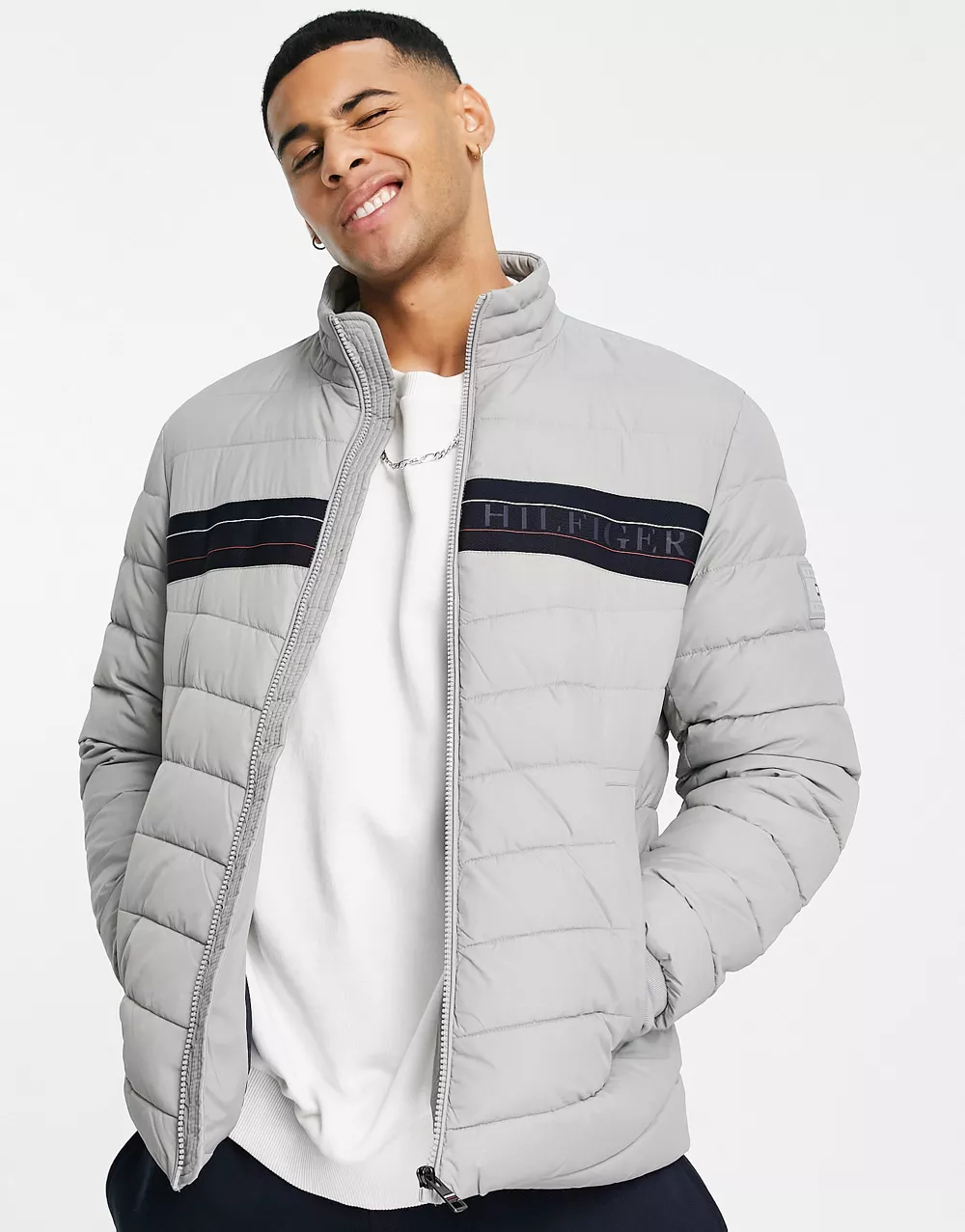 - Tommy Hilfiger stand collar taping puffer jacket in grey