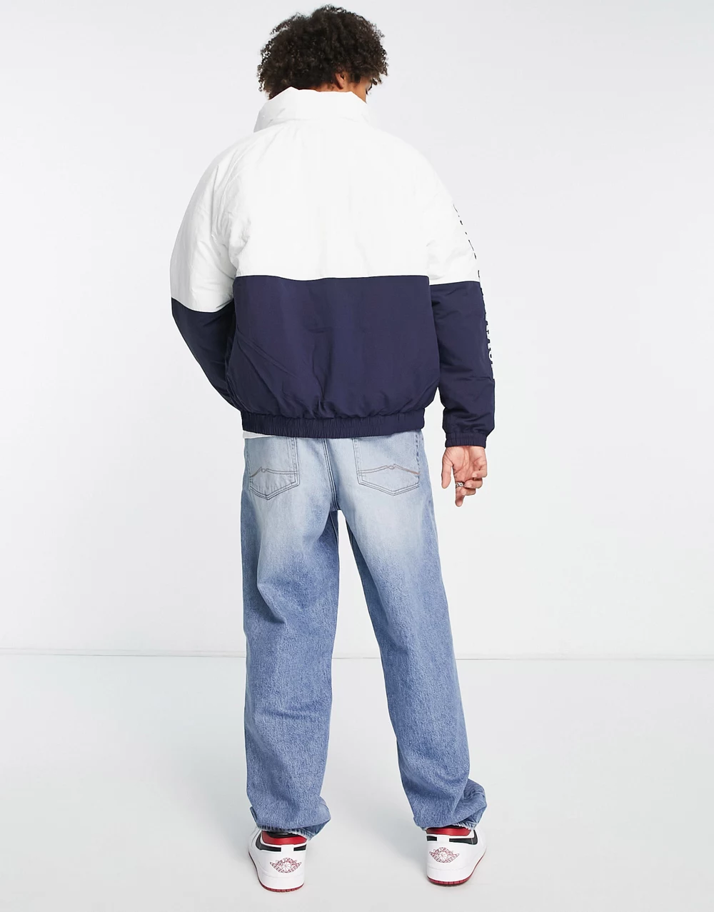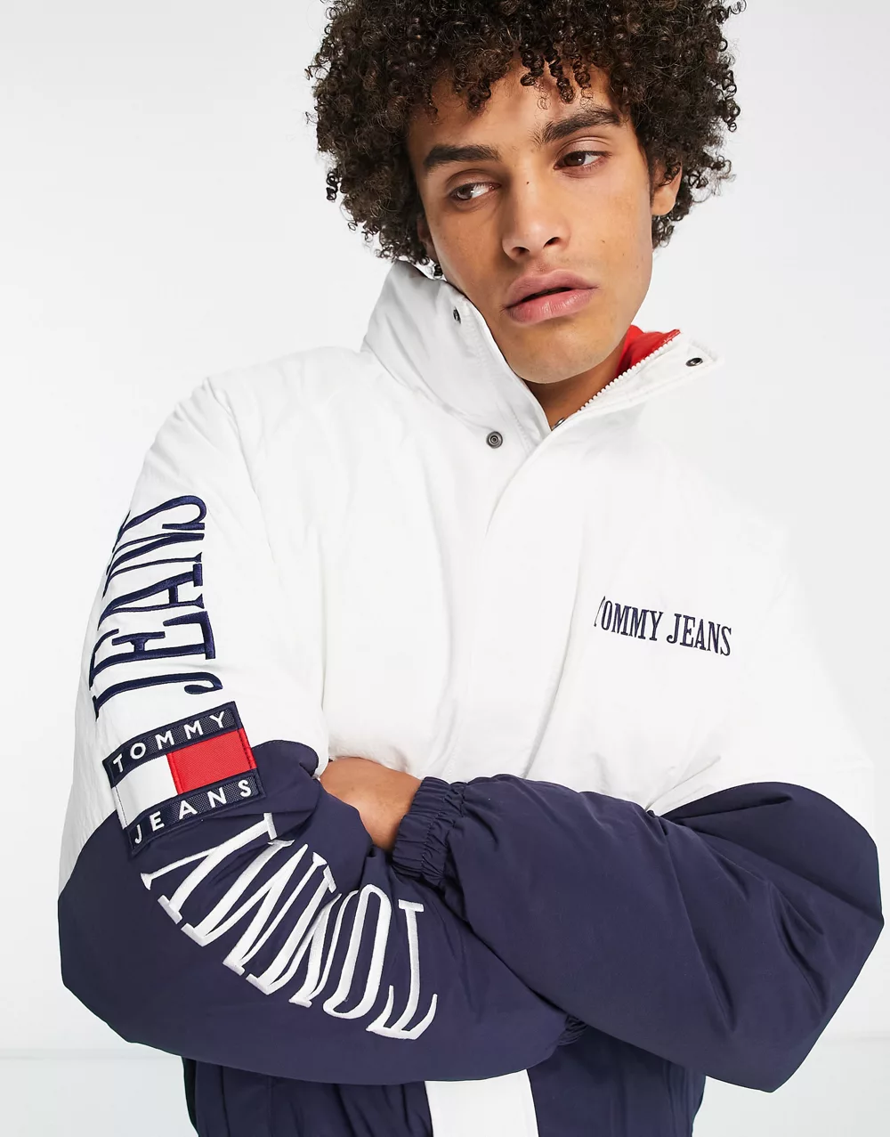 - Tommy Jeans archive sleeve logo colourblock jacket in navy